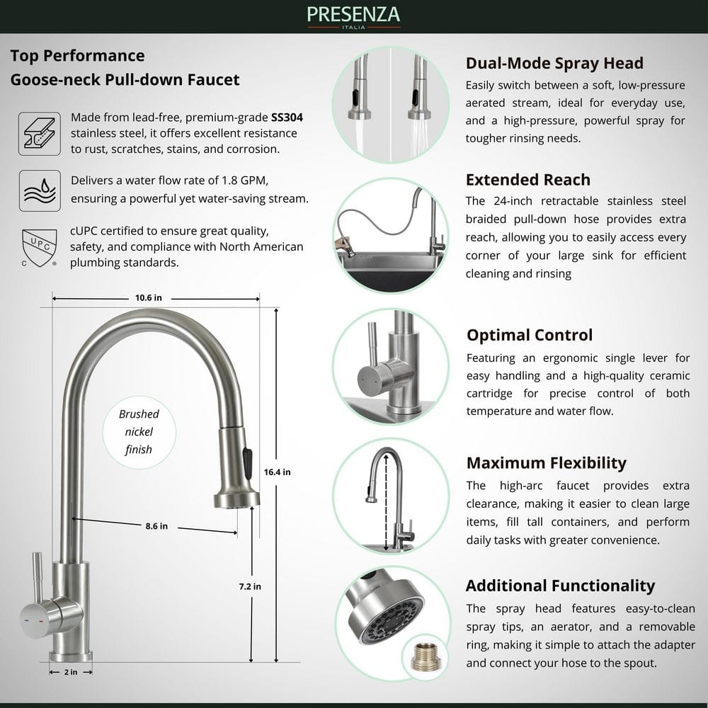 Q: Can this sink be used outdoors? A: While primarily designed for indoor use, the corrosion-resistant and rust-resistant materials used in the Presenza sink make it suitable for some outdoor environments. Always ensure it is under shelter to protect against weather.