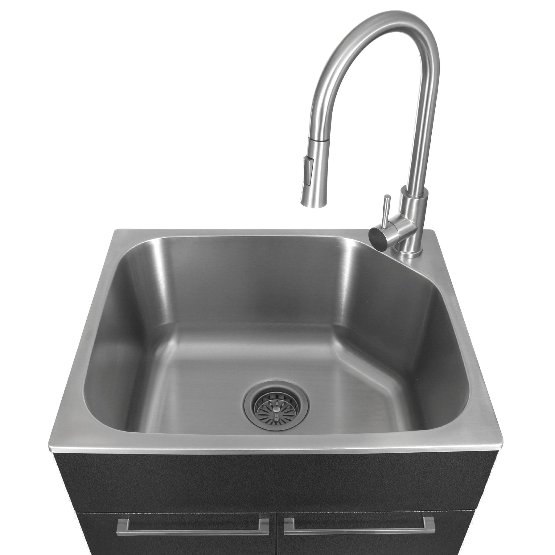 Q: Is the faucet compatible with other sinks? A: The included faucet is specifically designed to complement this utility sink, but it can also be used with other compatible one-hole sinks.