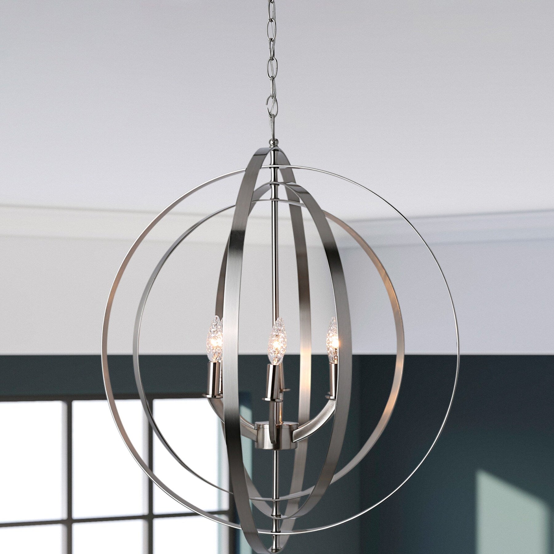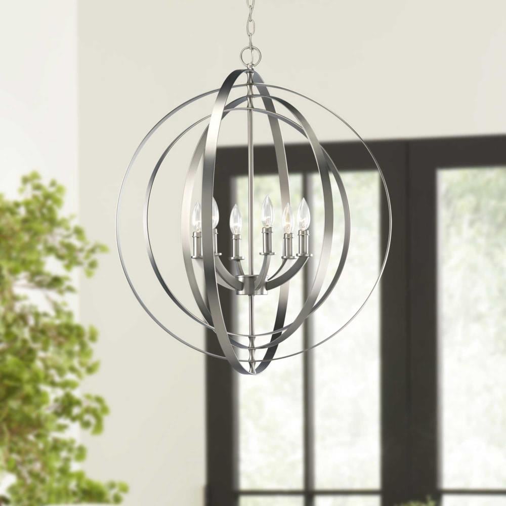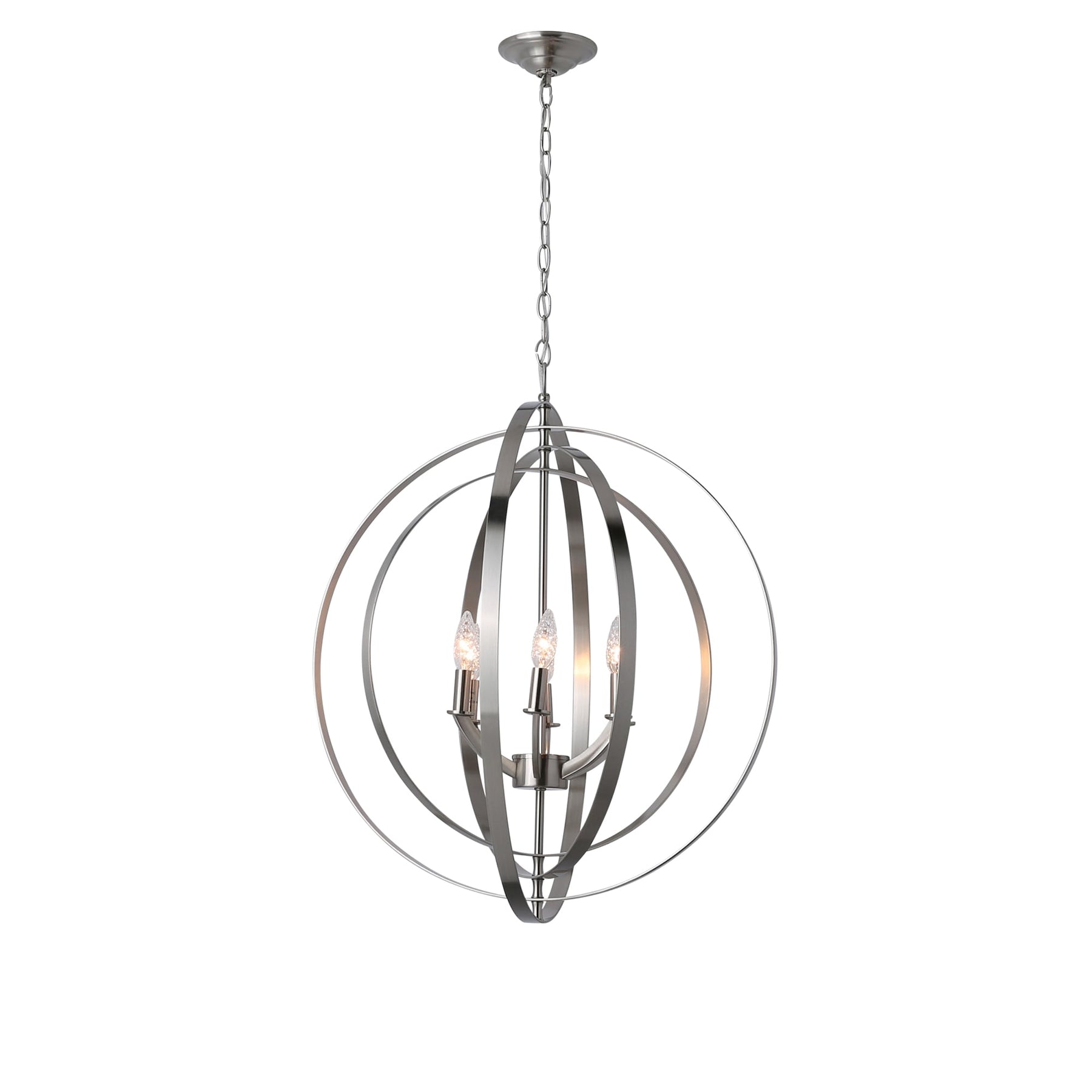 Illuminate your space with the elegant Equinox 6-Light Pendant. Featuring a brushed nickel finish and a striking globe design, this light fixture offers both style and functionality. Its multi-directional rings are inspired by celestial movement, making it a captivating addition to any home setting.