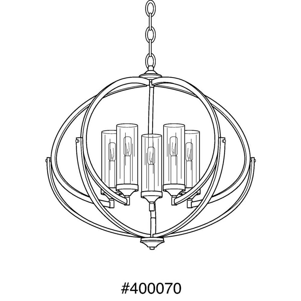 Q: What type of bulbs does this chandelier require? A: It accommodates five candelabra base incandescent or LED bulbs (E12), which are sold separately.