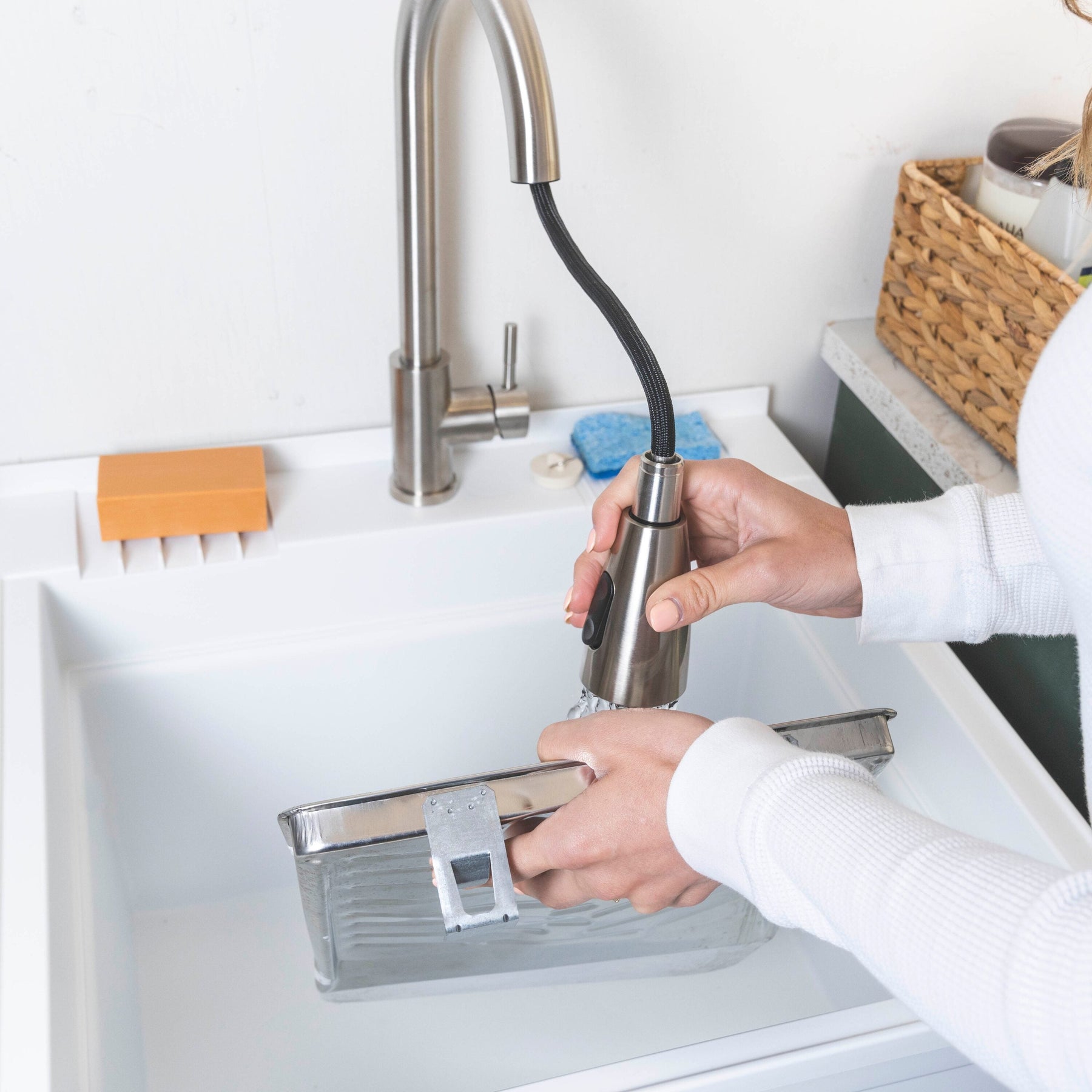 Complete Kit: Comes with a stainless steel 1.8 GPM faucet, supply lines, and quick-connect drain.