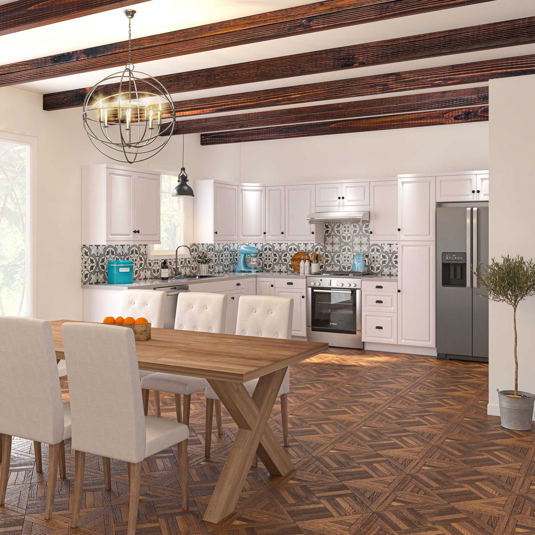 Revitalize your kitchen's setup with the Project Source Cheyenne 1-Drawer Base Cabinet. With its elegant raised panel design and moisture-resistant synthetic material, this cabinet combines style and durability. Its frameless construction offers 20% more storage, seamlessly fitting into any kitchen layout.