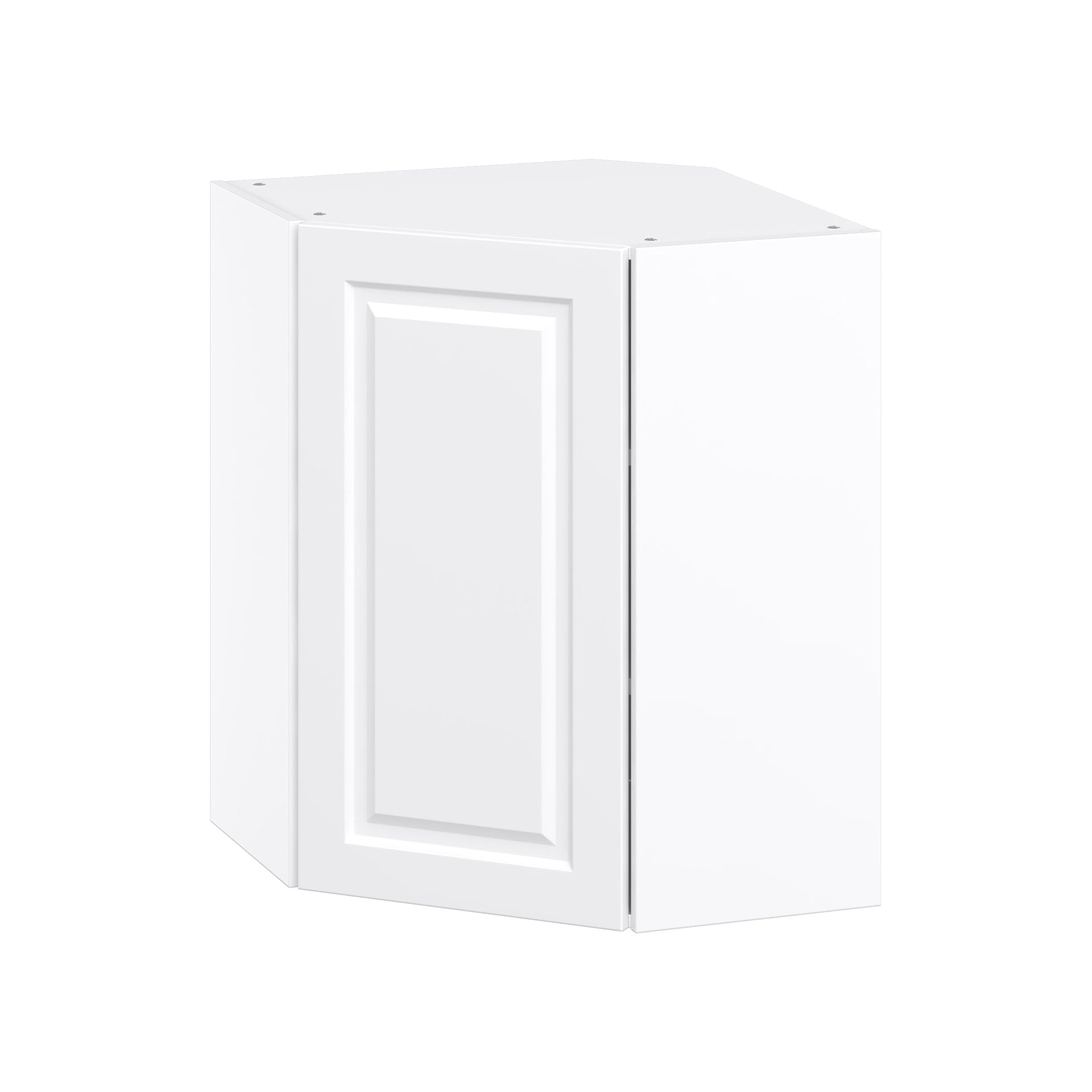 Unveil your kitchen's refined style with the Cheyenne White Corner Wall Cabinet. This piece not only maximizes your space but elevates it, combining efficient design with exquisite detailing. The elegantly raised panel doors evoke a sense of timeless sophistication, serving as a statement piece in any kitchen layout. Incorporate it seamlessly alongside stainless steel accents for a modern twist on classic beauty. A must-have for the discerning soul seeking both functionality and opulence in their living spaces.