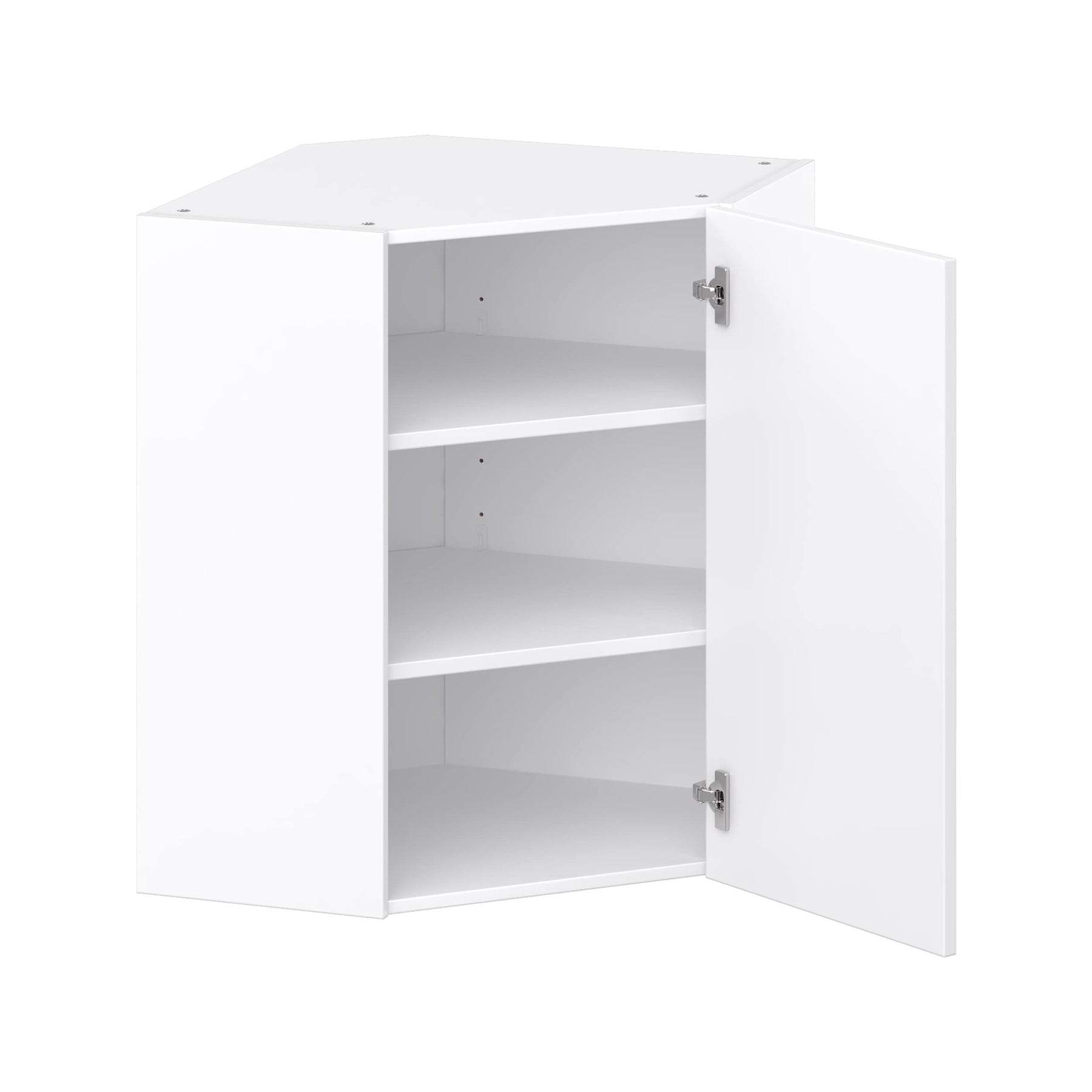 Maximize your kitchen space with the elegant Cheyenne White Corner Wall Cabinet, and experience timeless style with effortless functionality.