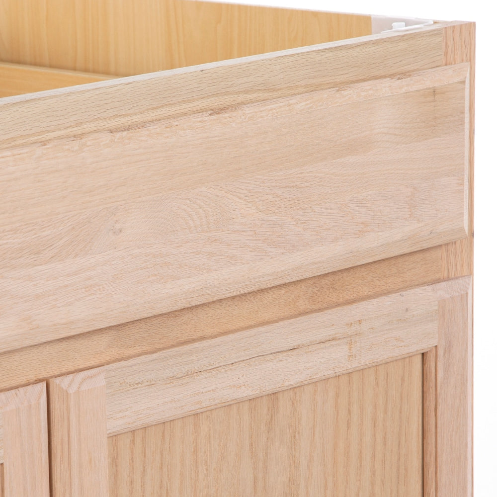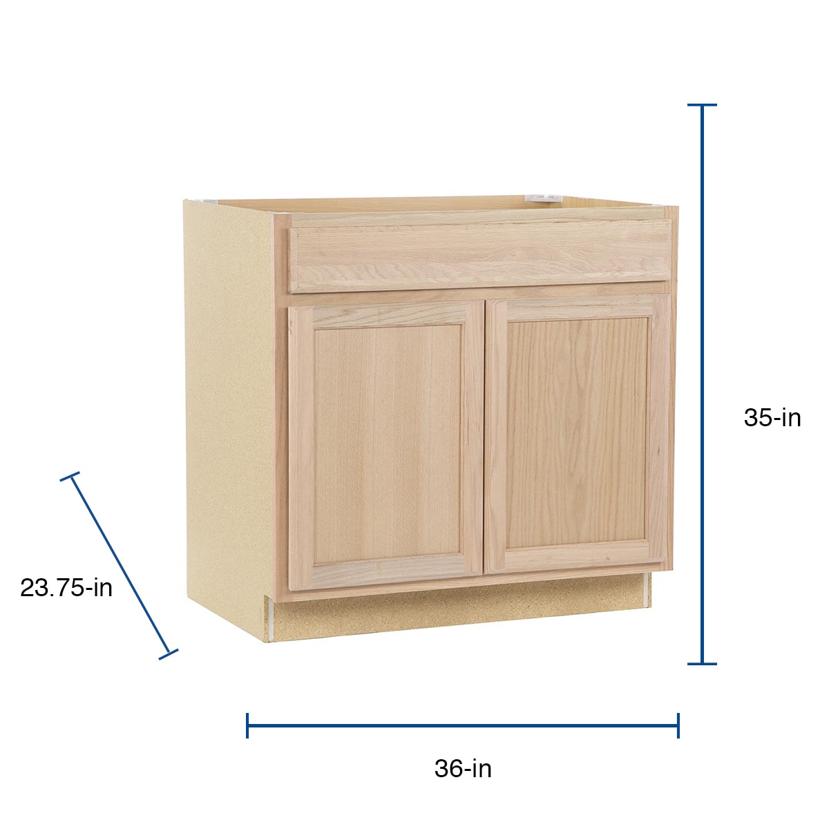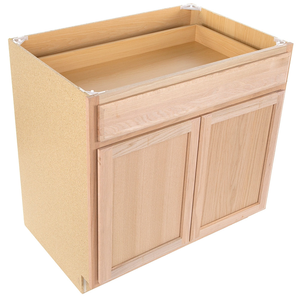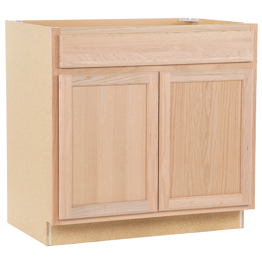 Enhance your kitchen with the Oak Brook 36" Unfinished Oak Base Cabinet, designed for versatility and functionality. This fully assembled cabinet boasts solid wood construction with a stylish flat panel square design, offering a classic and customizable option for any home improvement project.