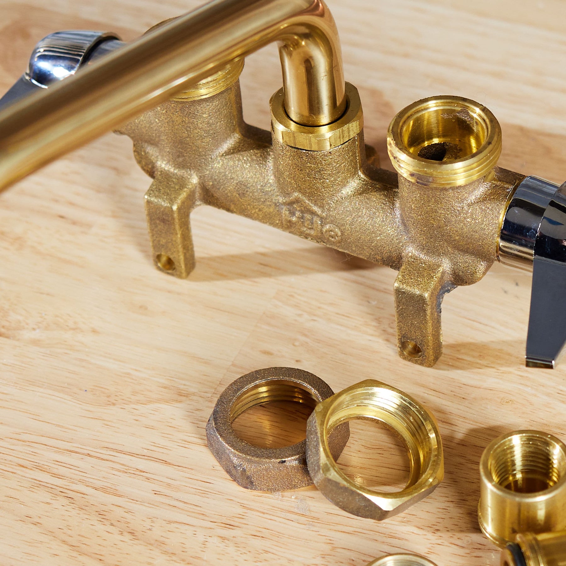 Enhance your utility or laundry room with the versatile Project Source Rough Brass 2-handle Deck-mount Utility Faucet. Designed for durability and ease of use, this utility faucet features solid brass construction for long-lasting performance and a swivel spout for maximum reach and flexibility.