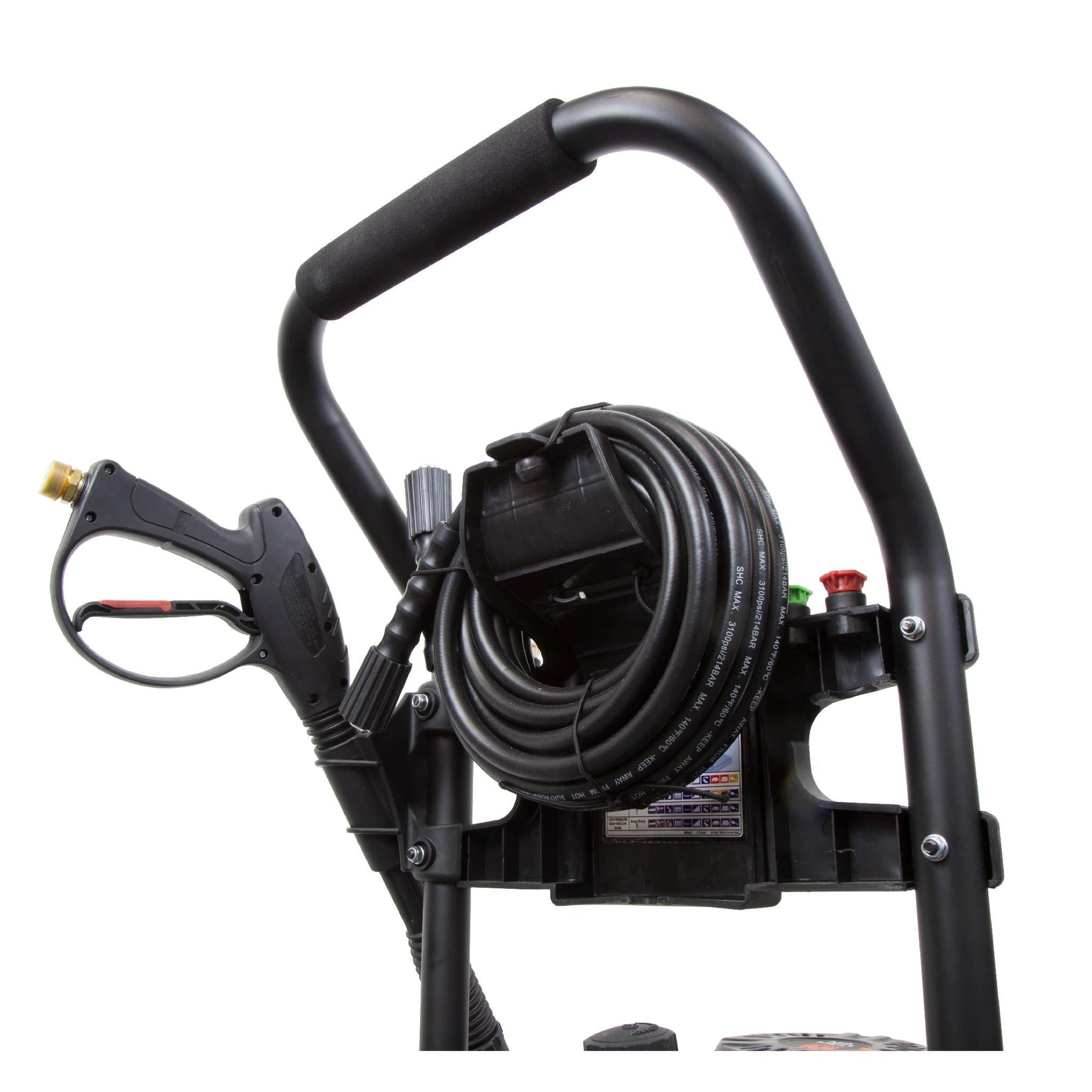 This CARB-compliant gas pressure washer delivers 2800 PSI of cleaning power with a 173cc 4-stroke OHV engine and an axial cam pump. A 25-foot reinforced hose, onboard 32 oz soap tank, and four quick-connect nozzles make it ready for driveways, decks, vehicles, and more.