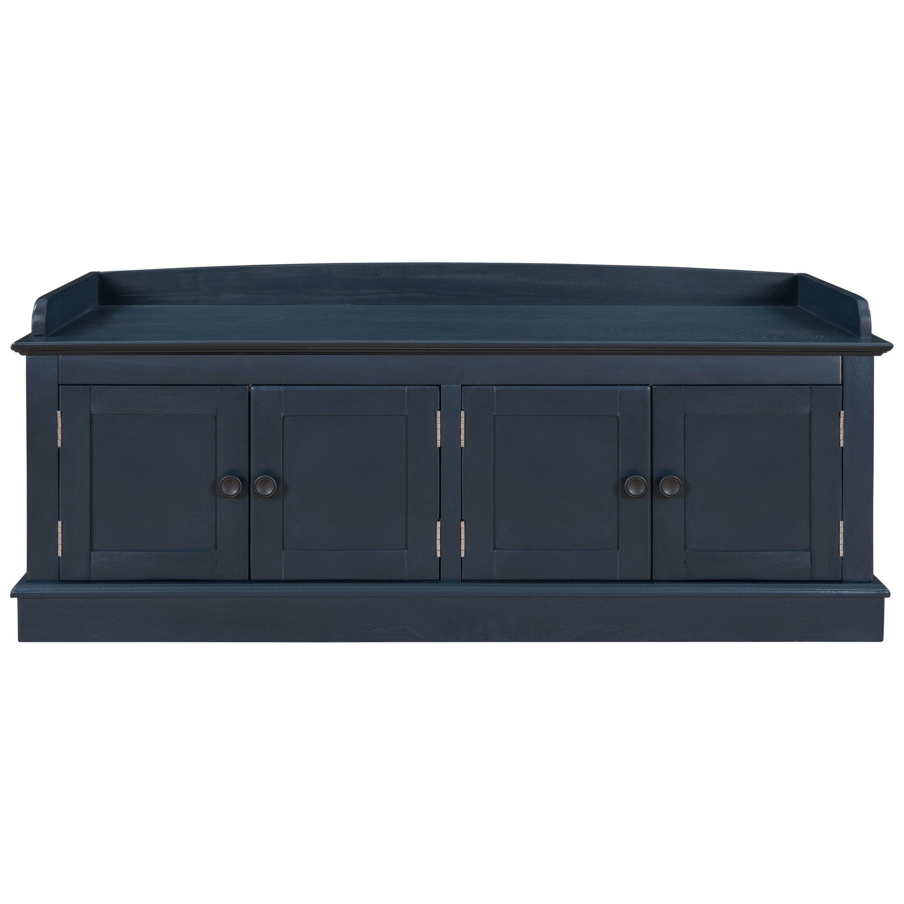 The Qualler Modern Antique Navy Storage Bench combines functionality and style, perfect for entryways or living spaces needing both seating and storage. Constructed from solid pinewood and MDF for durability, it includes a detachable linen cushion for comfort and features 4 compartments and 2 shelves to keep clutter at bay.