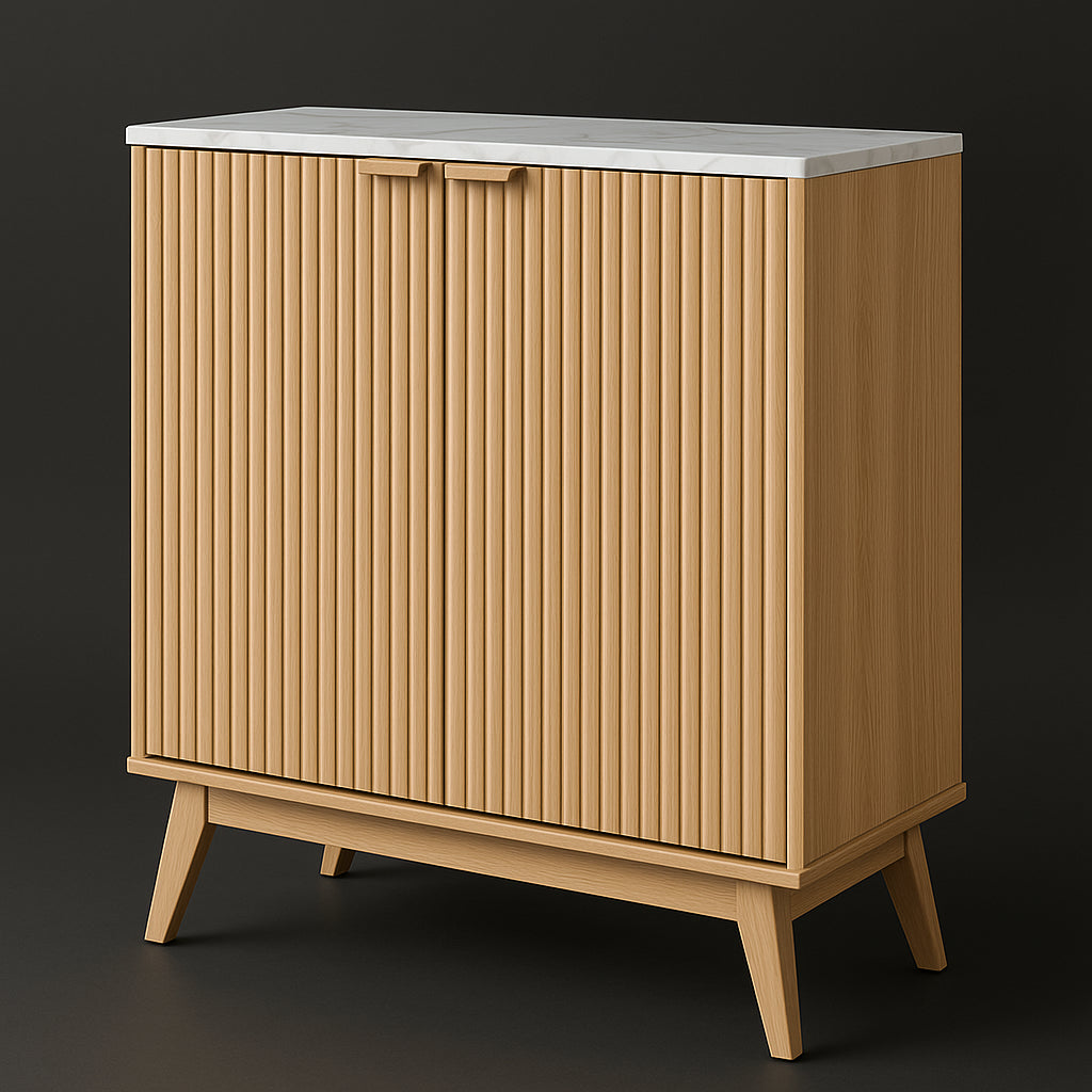 - Stylish Design: Faux stone tabletop with wood grain fluted panels.