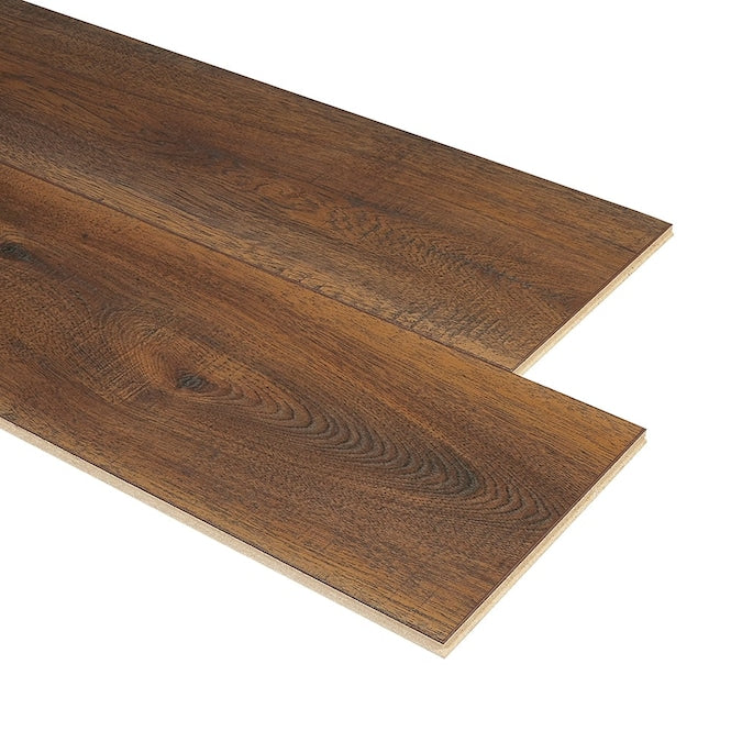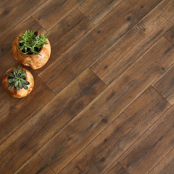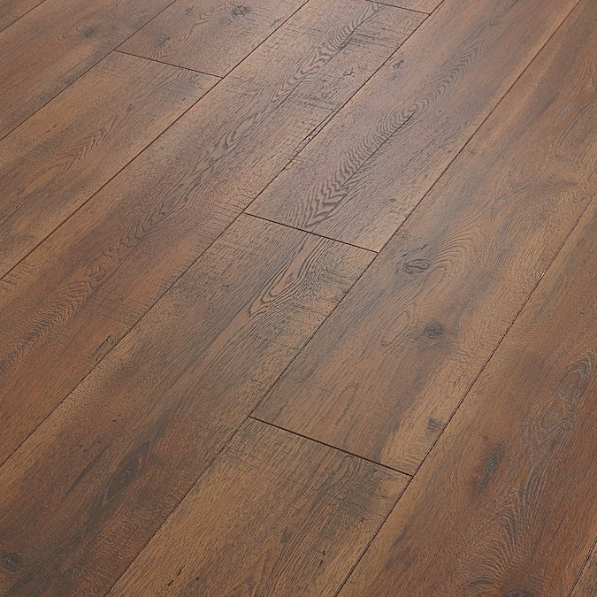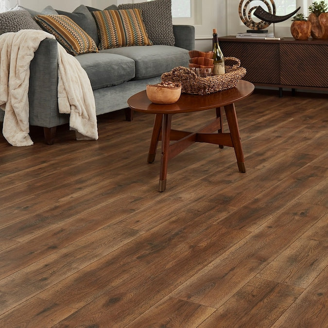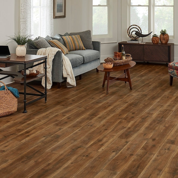 Envision the warm, rustic allure of genuine aged hickory elevating the ambiance of your space. With its intricate wood graining and authentic saw marks, this flooring serves as the perfect canvas for your design vision. Complement its earthy tones with plush textiles or sleek metallic accents to create a harmonious blend of style and function. This laminate not only enhances your aesthetic but also offers robust, water-resistant performance, making it indispensable for luxurious, hassle-free living.