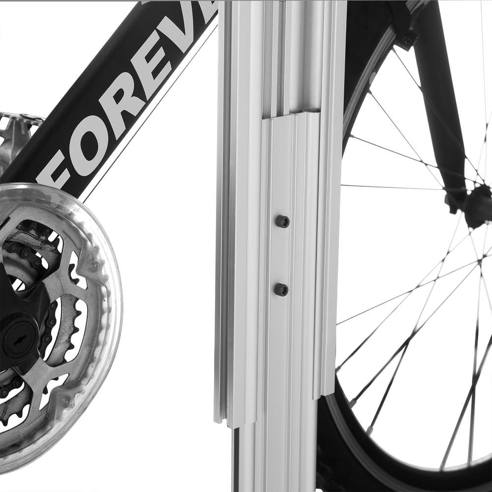 Effortlessly organize your garage with the RAD Cycle Silver 2-Bike Upright Tension Mount Garage Bike Rack. Crafted from durable aluminum, this rack adjusts to fit ceilings up to 11 feet, securely holding two bikes without damaging your ceiling or floor. It's a reliable choice for convenient and stylish bike storage.