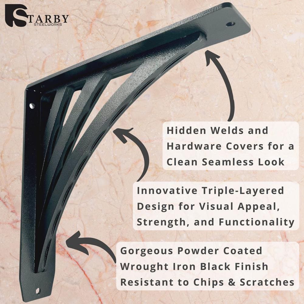 Elevate your shelving with the Ravenel Black Iron Shelf Brackets from Starby. Designed from premium American steel, these heavy-duty brackets can support over 500 lbs, making them an ideal choice for robust storage solutions. With a sleek, nature-inspired design and hidden welds, these brackets offer both strength and elegance.
