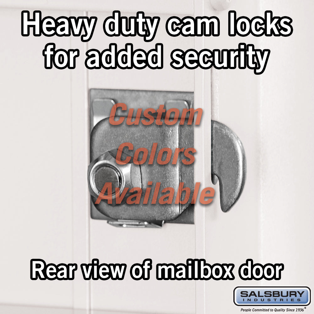 Q: What type of lock is included? A: The mailbox includes a heavy-duty cam lock with a dust/rain shield and 3 keys.