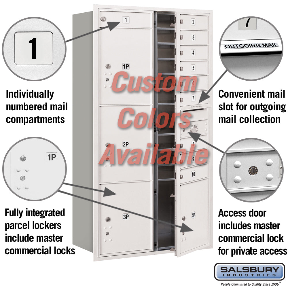 Parcel Locker Sizes PL3 (10-1/4" H), PL4 (13-3/4" H), PL4.5 (15-1/2" H), PL5 (17-1/4" H), PL6 (20-3/4" H)