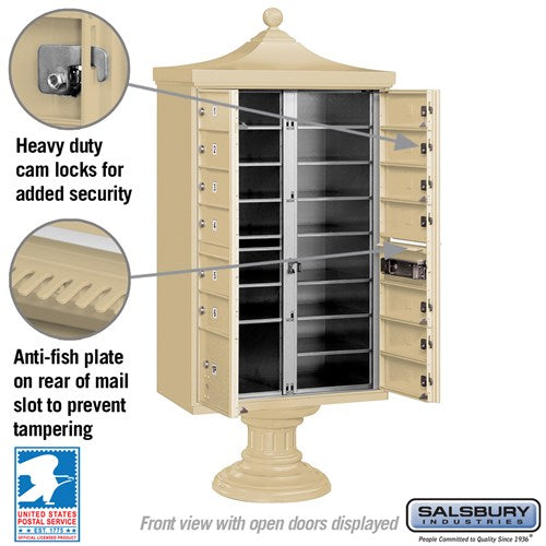 Regency Decorative Cluster Box Unit with 13 Doors and Parcel Locker in Sandstone