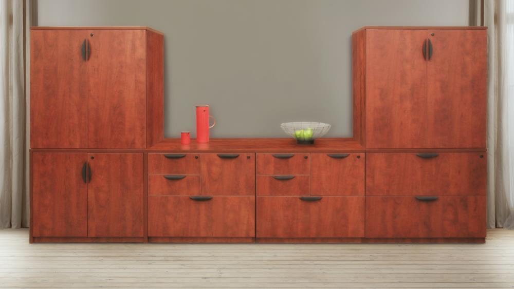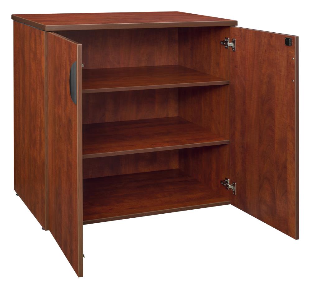 Enhance your office organization with the Regency Legacy Cherry 3-Shelf Office Cabinet. Featuring a robust cherry laminate finish, this functional piece offers stylish, secure storage with locking doors and adjustable shelves, ideal for both stand-alone use or stacking to create a custom storage solution.