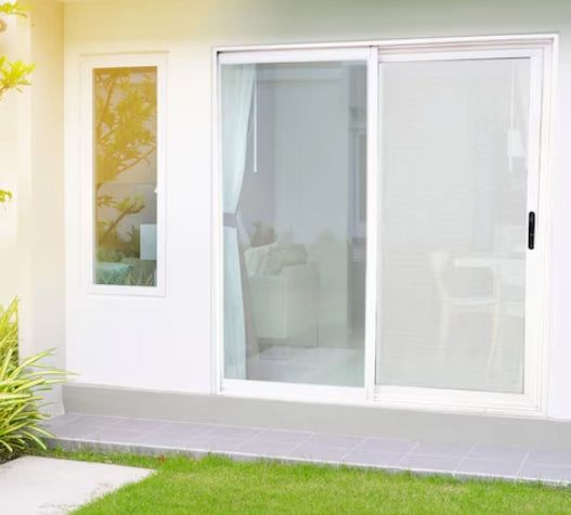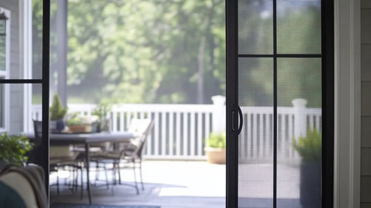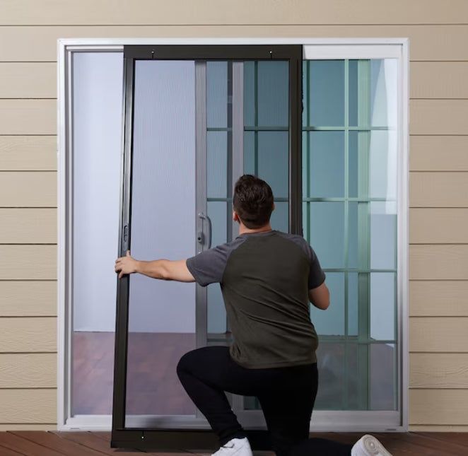 This screen door is suitable for Lowe's 5-ft wide stock patio doors as well as other brands. You can easily adjust its height from 76 in to 79 in, making it versatile for installation. It is hardware mounted and can be latched with either hand.