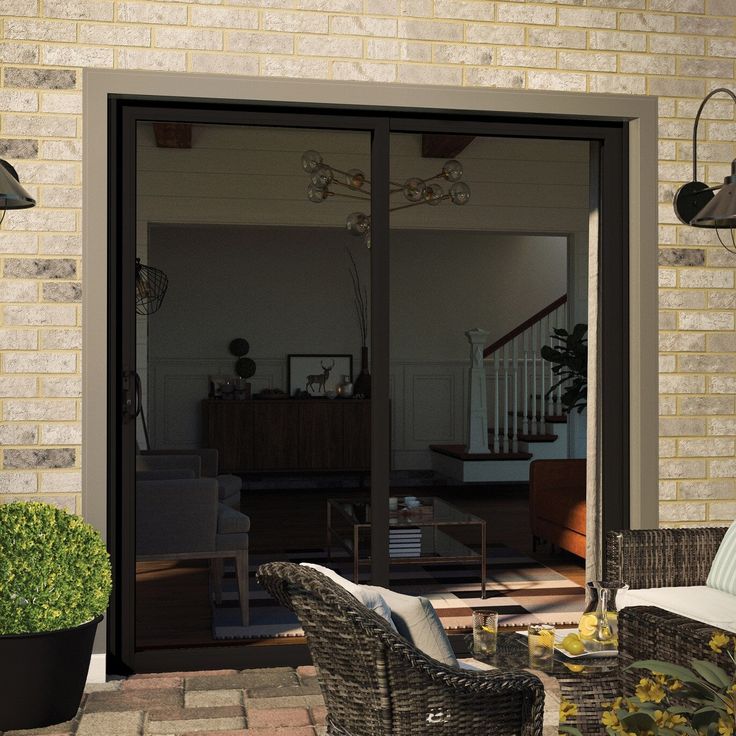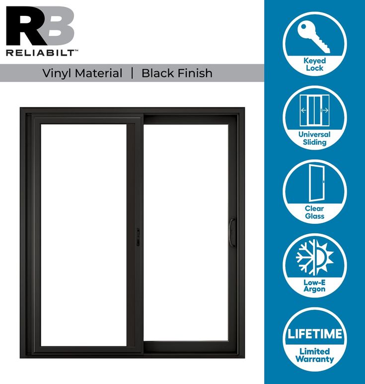 The exterior nailing fin on the door frame is a standard feature for new construction installations. It can also be easily removed for replacement applications. The 7/8 inch tempered glass in the warm-edge insulated glass system resists condensation and improves efficiency. This RELIABILT 72-in x 80-in 4-9/16-in Low-e Argon Black Vinyl Sliding Universal Double Patio Door is a reliable choice for any patio.