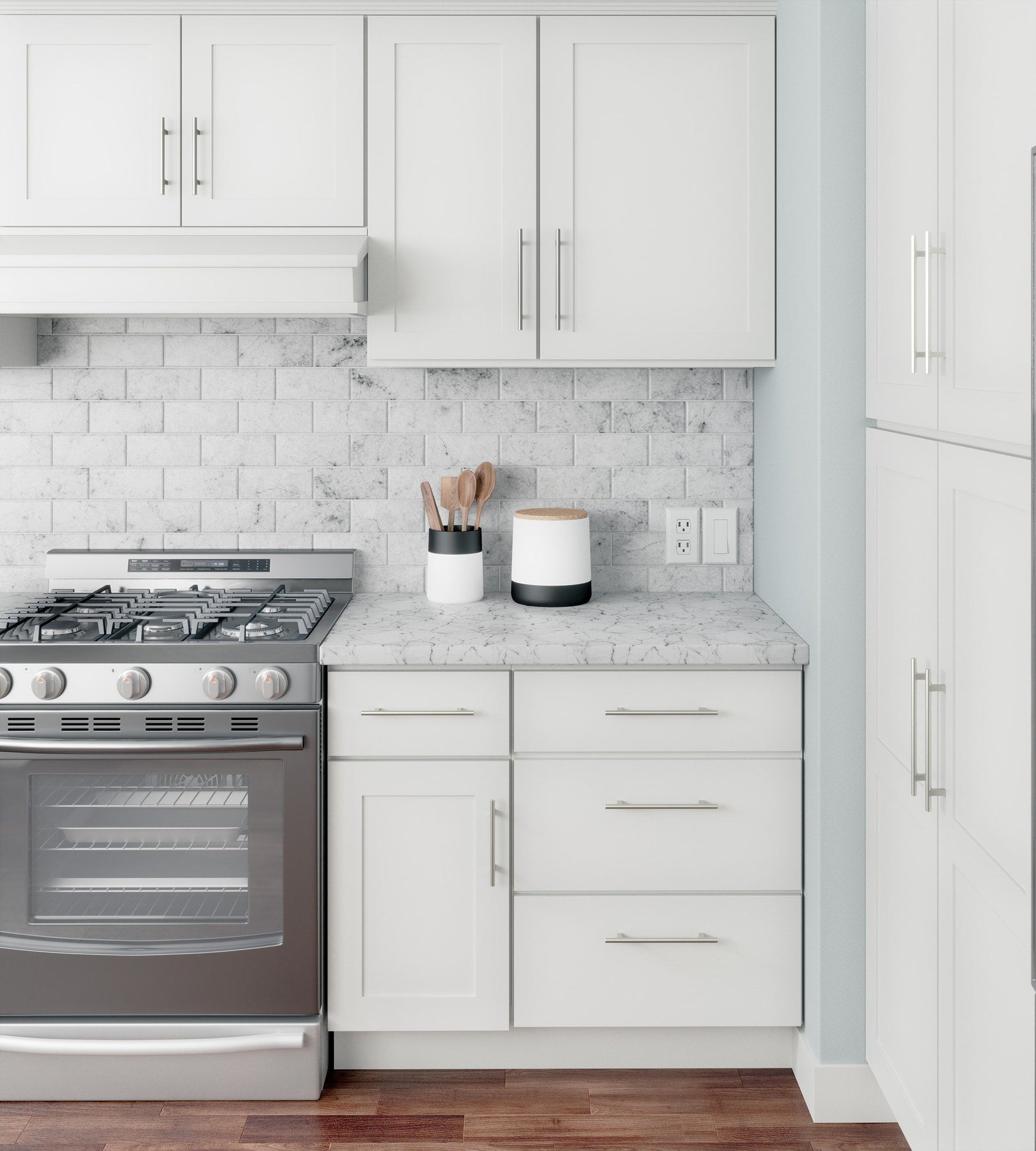 Design: Shaker style with a flat panel door and matte white finish adds a clean, modern look.