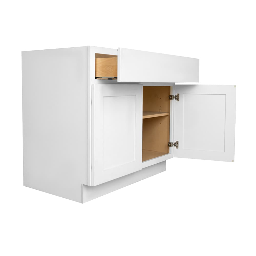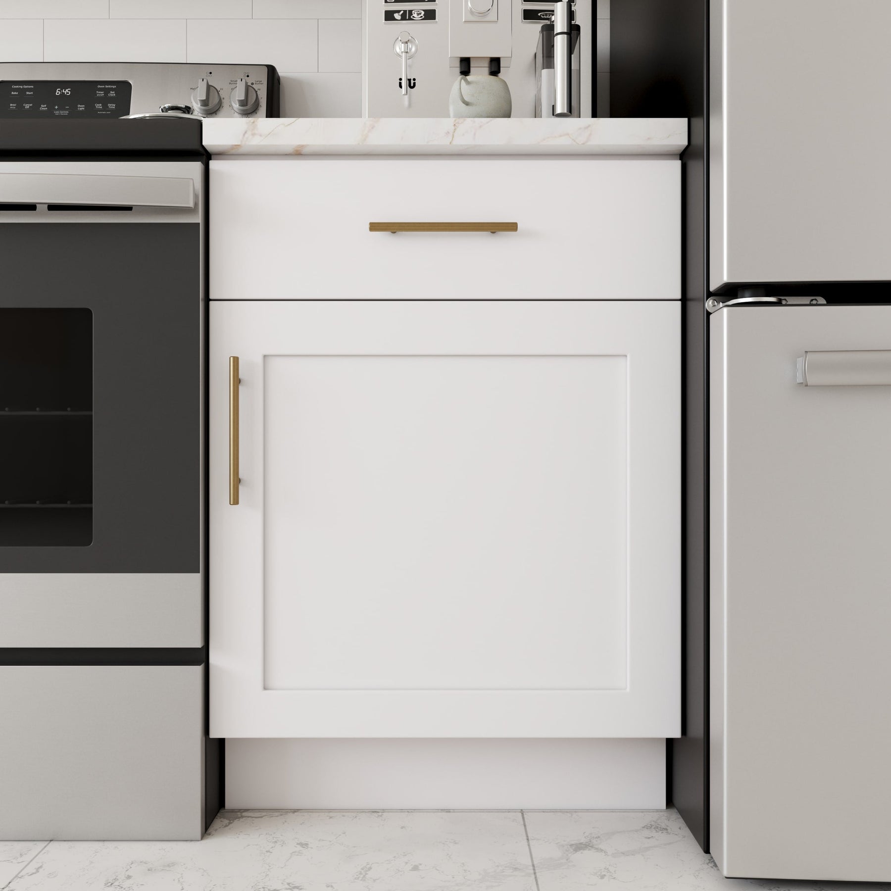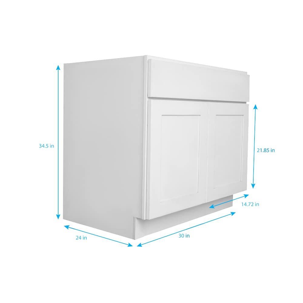 Elevate your space with the RELIABILT Fairplay 30-Inch White Shaker Base Cabinet. Designed for both durability and modern aesthetics, this cabinet features a sleek matte white finish and a recessed panel Shaker style, adding a touch of elegance to kitchens, bathrooms, or utility rooms. Engineered for quick assembly, it's a practical and stylish storage solution for professionals and DIY enthusiasts alike.