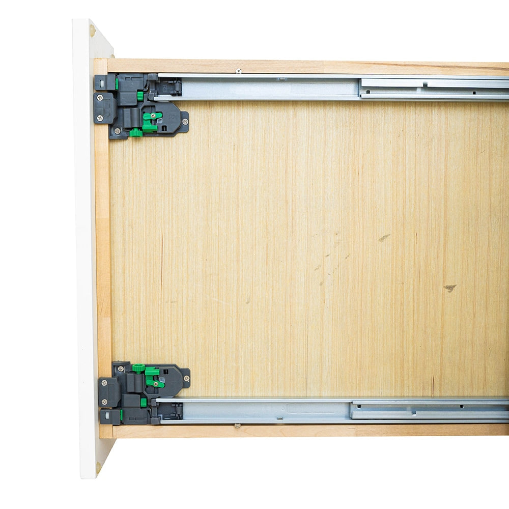 Functionality: Silent soft-close hinges and adjustable full-depth shelves for customized storage.