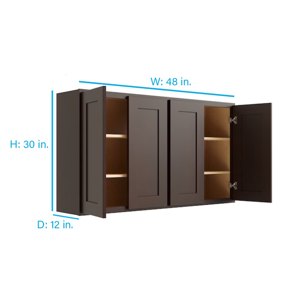 RELIABILT Parkstone 48-in W x 30-in H x 12-in D Espresso Wall Fully Assembled Plywood Cabinet (Shaker Door Style)