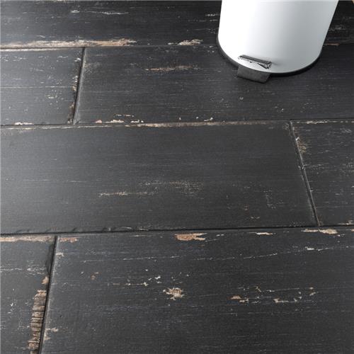 Retro Nero Black Wood-Look Porcelain Floor & Wall Tile, 8.25 x 23.5 in.