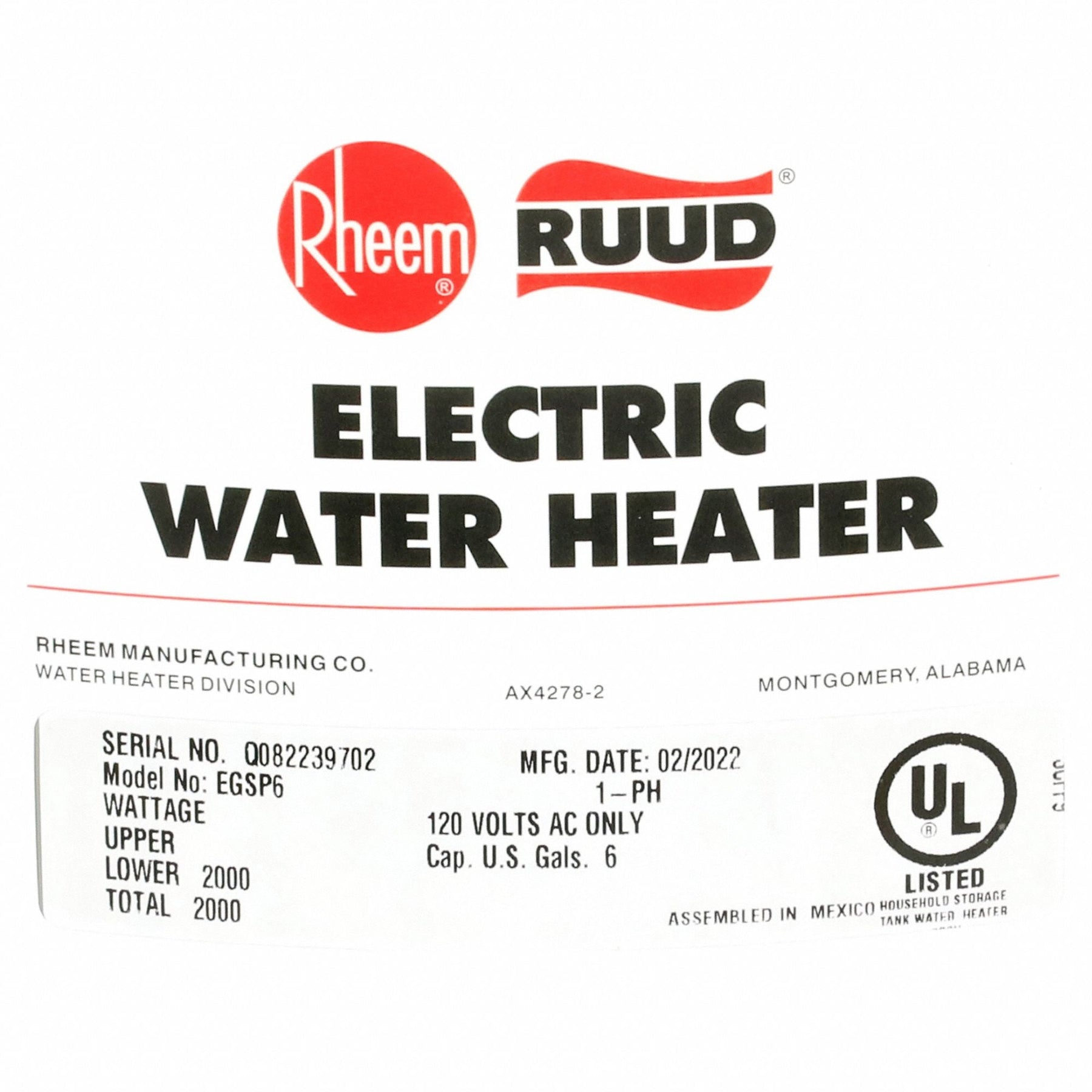 RHEEM-RUUD 6-Gallon Point-of-Use Electric Water Heater - 120V