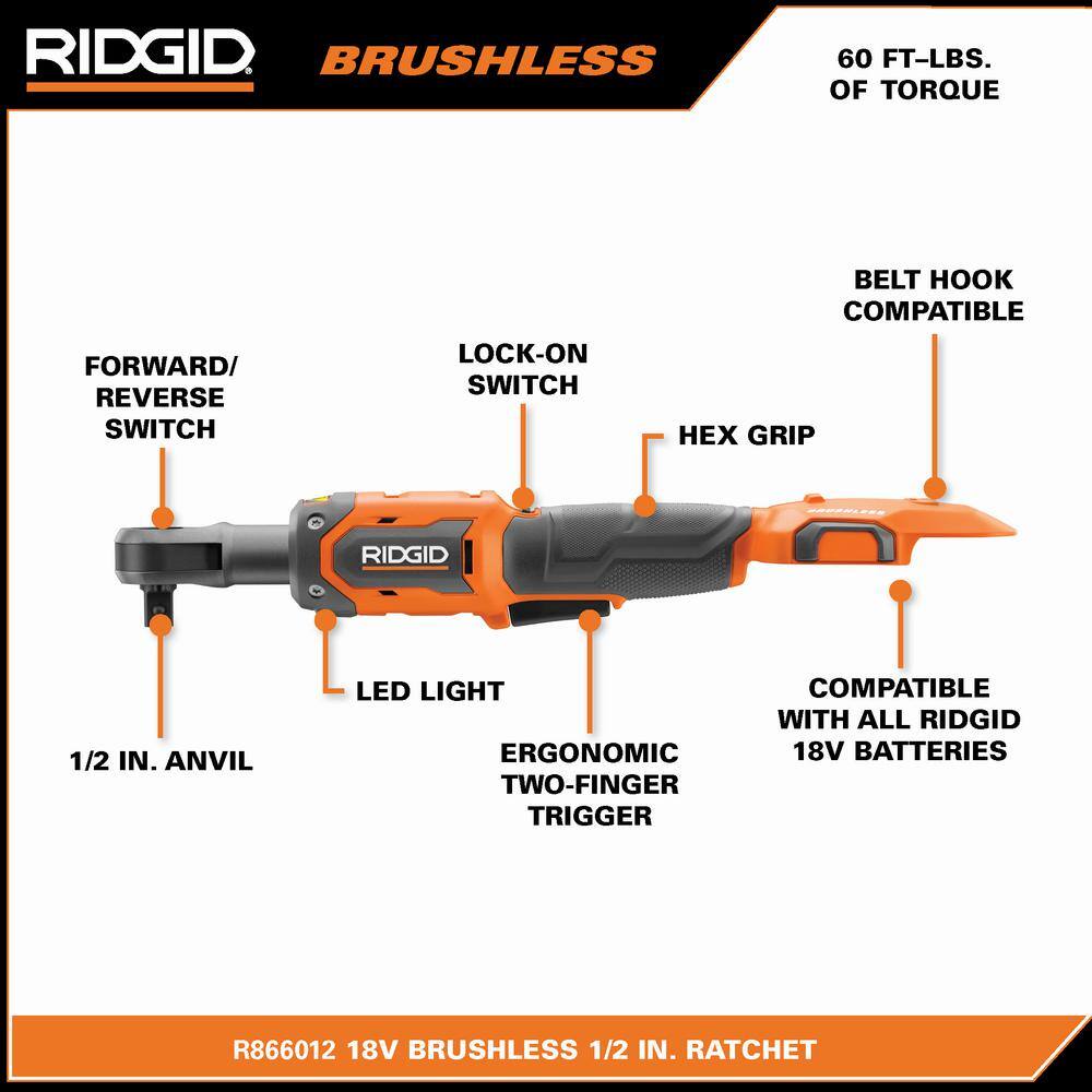 Transform your next project with the RIDGID 18V Brushless Cordless 1/2 in. Ratchet and experience revolutionary efficiency and power—purchase now and register for lifetime service.