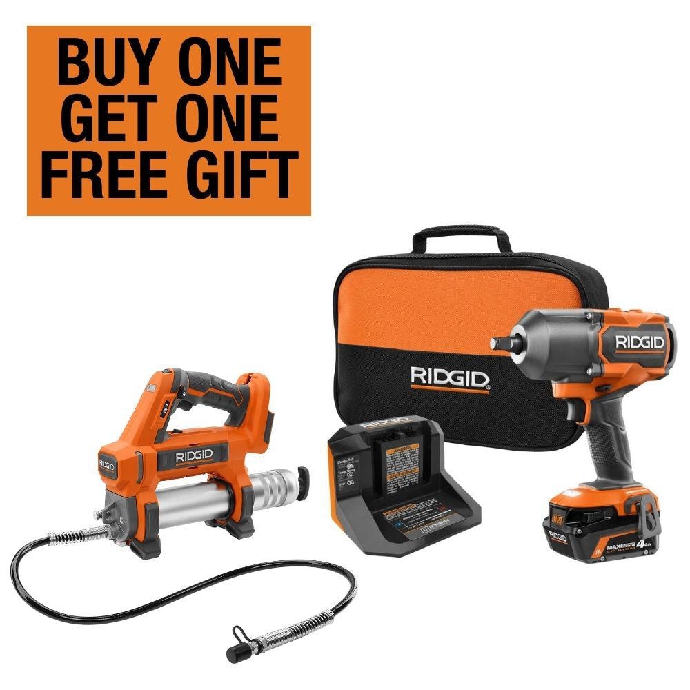 The RIDGID 18V Brushless 2-Tool Combo Kit combines power and precision with a high-torque impact wrench and a versatile grease gun. Equipped with a 4.0 Ah battery and smart technology, this kit promises superior performance and efficiency for any professional task.