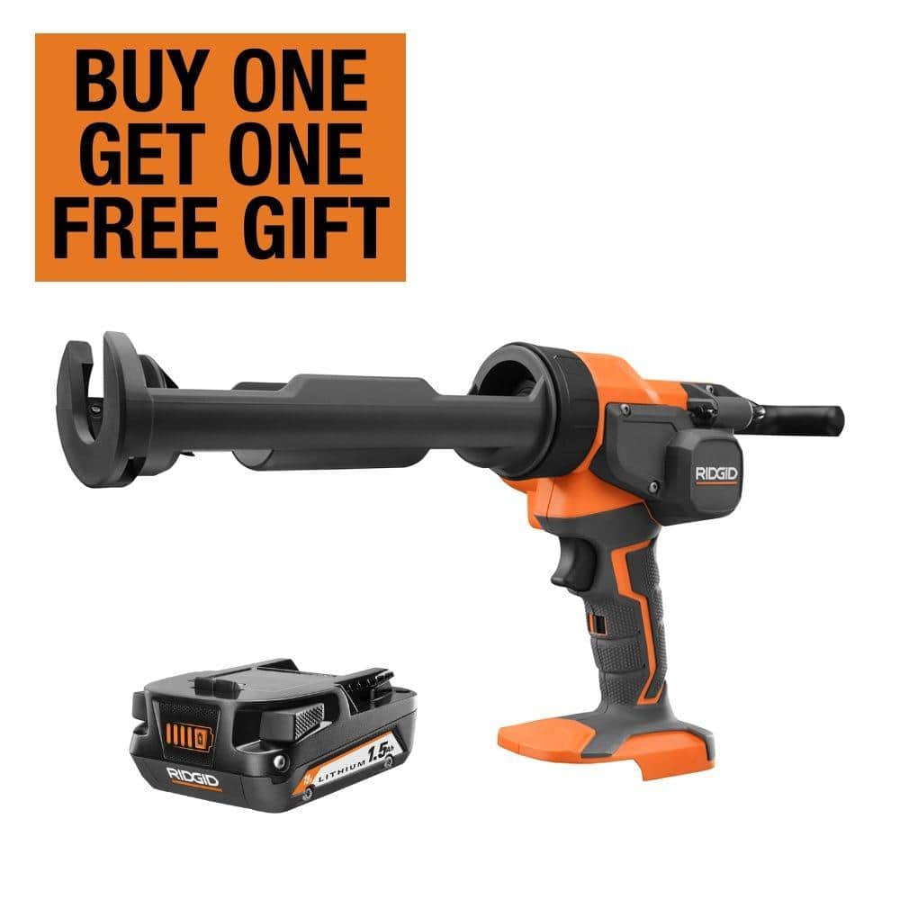 The RIDGID 18V Cordless 10 oz. Caulk Gun and Adhesive Gun with 18V Lithium-Ion 1.5 Ah Battery delivers over 750 lbs. of push force, making it ideal for handling high-viscosity materials effortlessly. This tool minimizes fatigue with its cordless convenience and offers versatility with a variable speed selector for precision control. Backed by RIDGID's Lifetime Service Agreement, it's designed for the long haul.