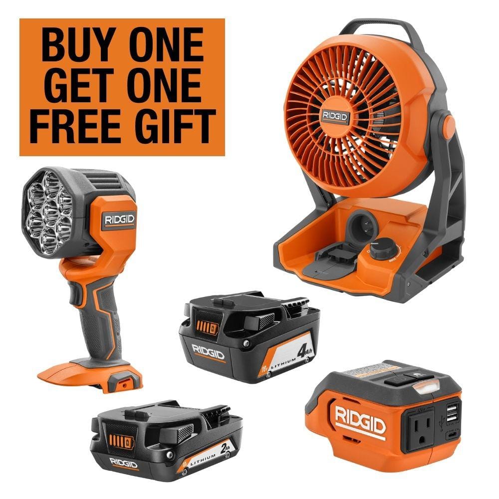 Power through your projects with the RIDGID 18V Cordless 3-Tool Combo Kit, featuring a versatile AC inverter, powerful hybrid jobsite fan, and a bright LED spotlight. This kit is ideal for on-the-go professionals, providing cordless convenience and innovative power for a variety of tools. With long-lasting batteries and the reliability of RIDGID, you can tackle any task, anywhere.