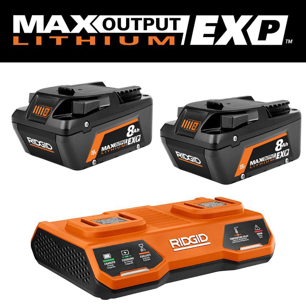 RIDGID 18V Dual Port Charger with 8.0 Ah EXP Batteries