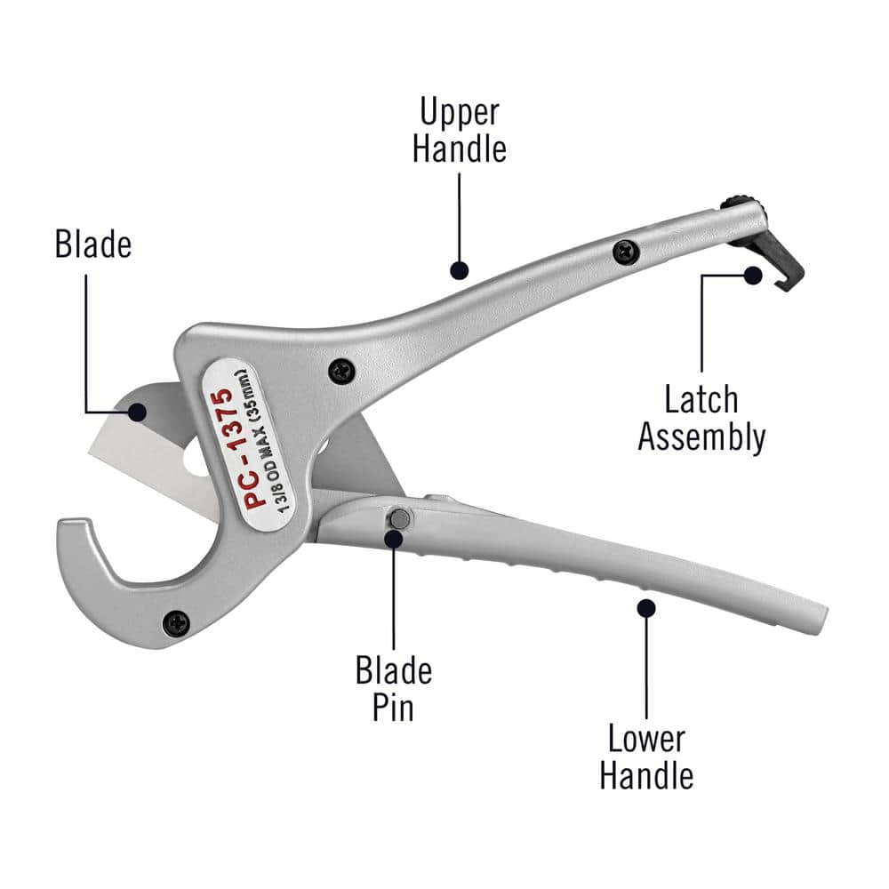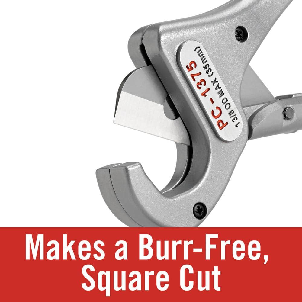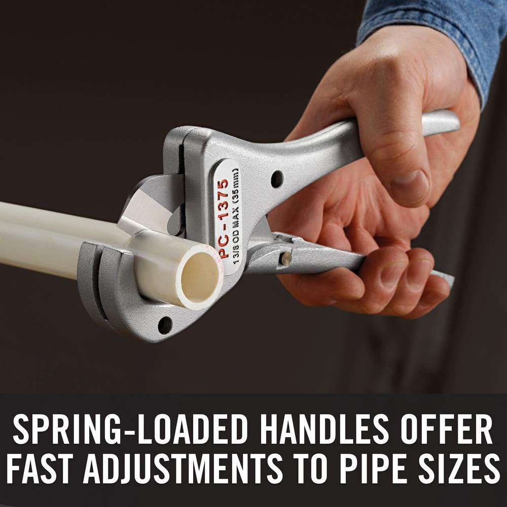Built for fast, burr-free cuts on plastic and multilayer tubing, the RIDGID PC-1375 ML features a hardened, replaceable blade and durable aluminum construction. Spring-loaded handles and an easy-turn thumb latch speed adjustments and storage, while the ML adapter improves multilayer cutting and re-rounds tubing.