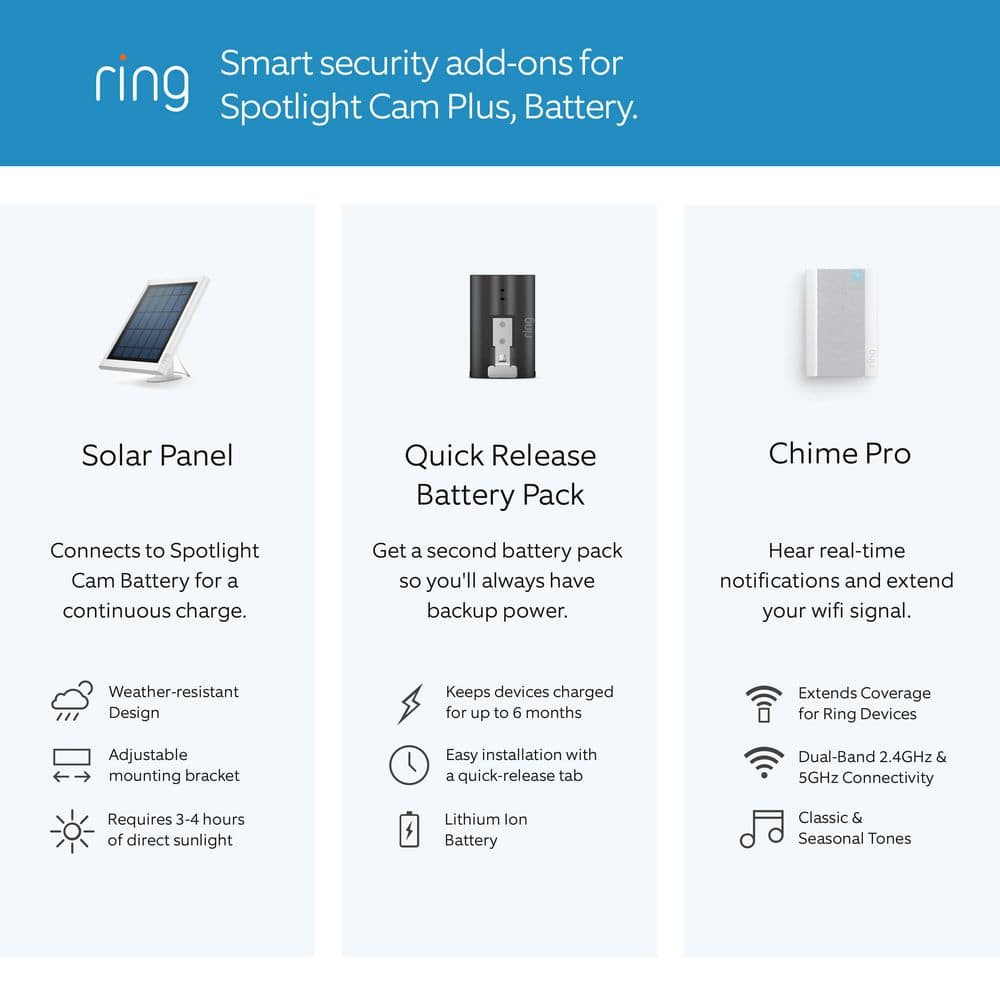 A: The Ring Spotlight Cam Plus operates on a rechargeable battery, ensuring functionality even during power outages. Keep an extra battery on hand for quick swaps.