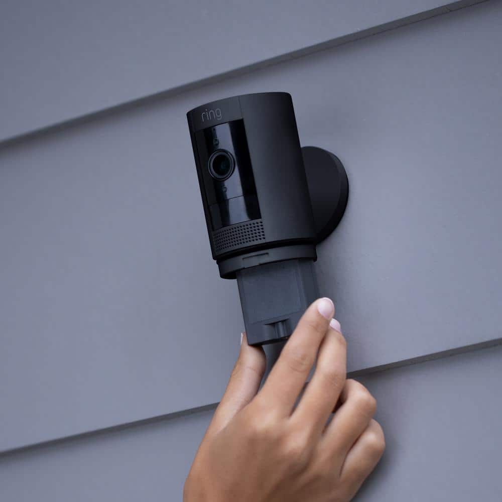 Q: How do I install the Ring Stick Up Cam? A: The Ring Stick Up Cam can be freely placed on a flat surface or wall-mounted using the included hardware, making it easy to install without professional help.
