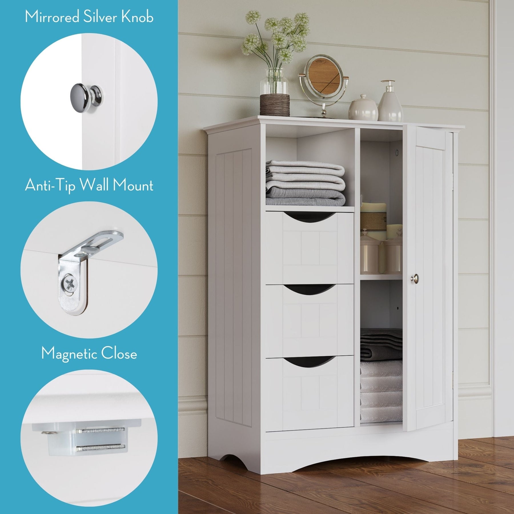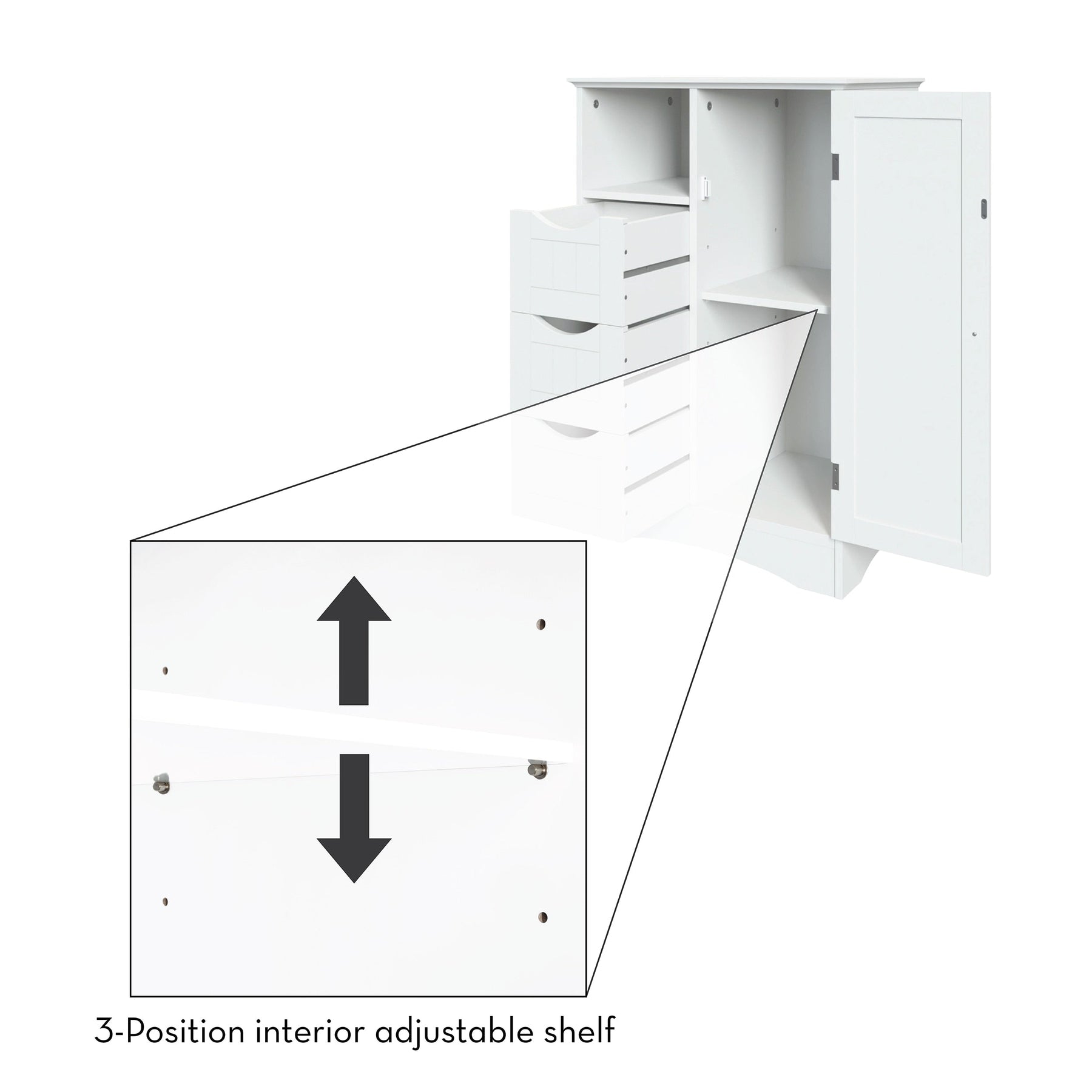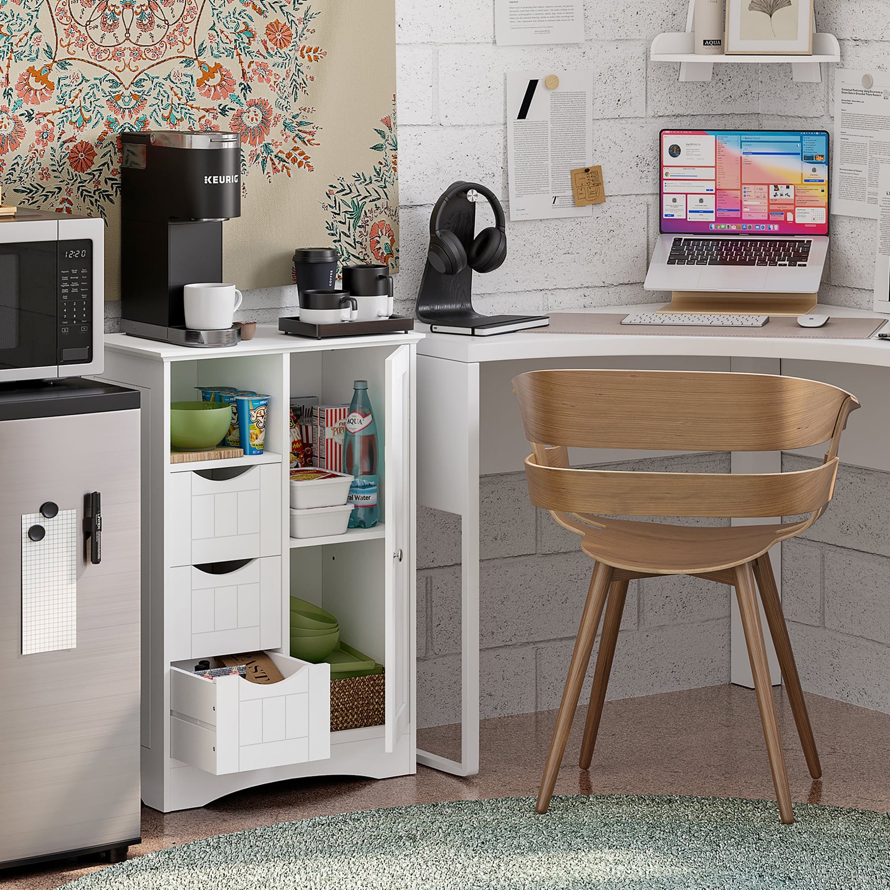 Ample Storage: Includes one door, three drawers, an open cubby, and adjustable shelves.