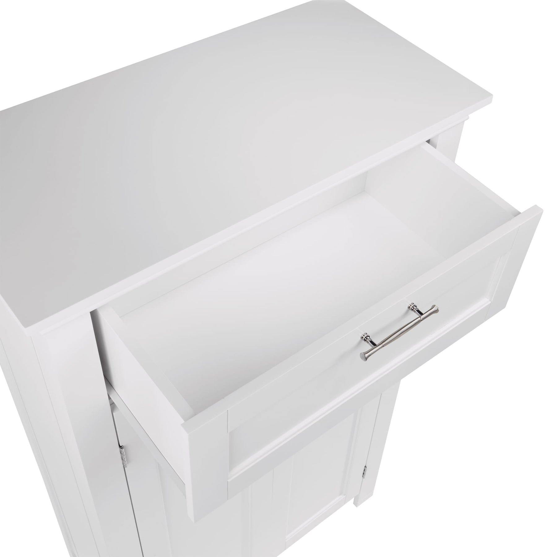 The RiverRidge Somerset Linen Cabinet is a stylish solution for organizing your bathroom or entryway. Constructed from durable MDF with a classic white finish, this freestanding cabinet features adjustable shelves and a smooth gliding drawer, maximizing your space with elegance.