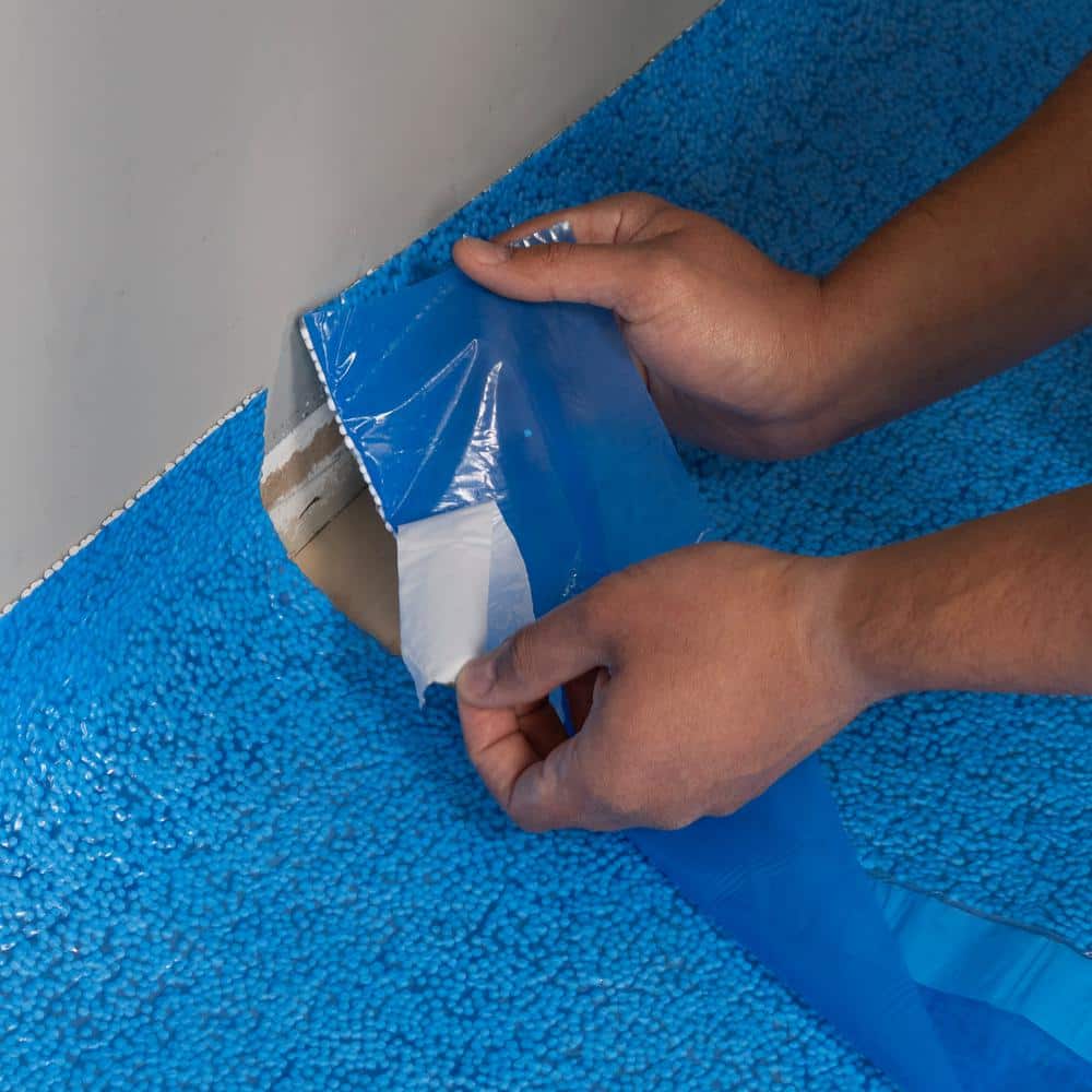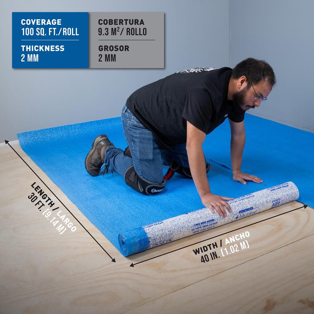 Q: How is the underlayment installed? A: The ROBERTS AirGuard Underlayment installs quickly with a self-sealing lip and tape system. Simply roll out, attach, and cut to fit your space.