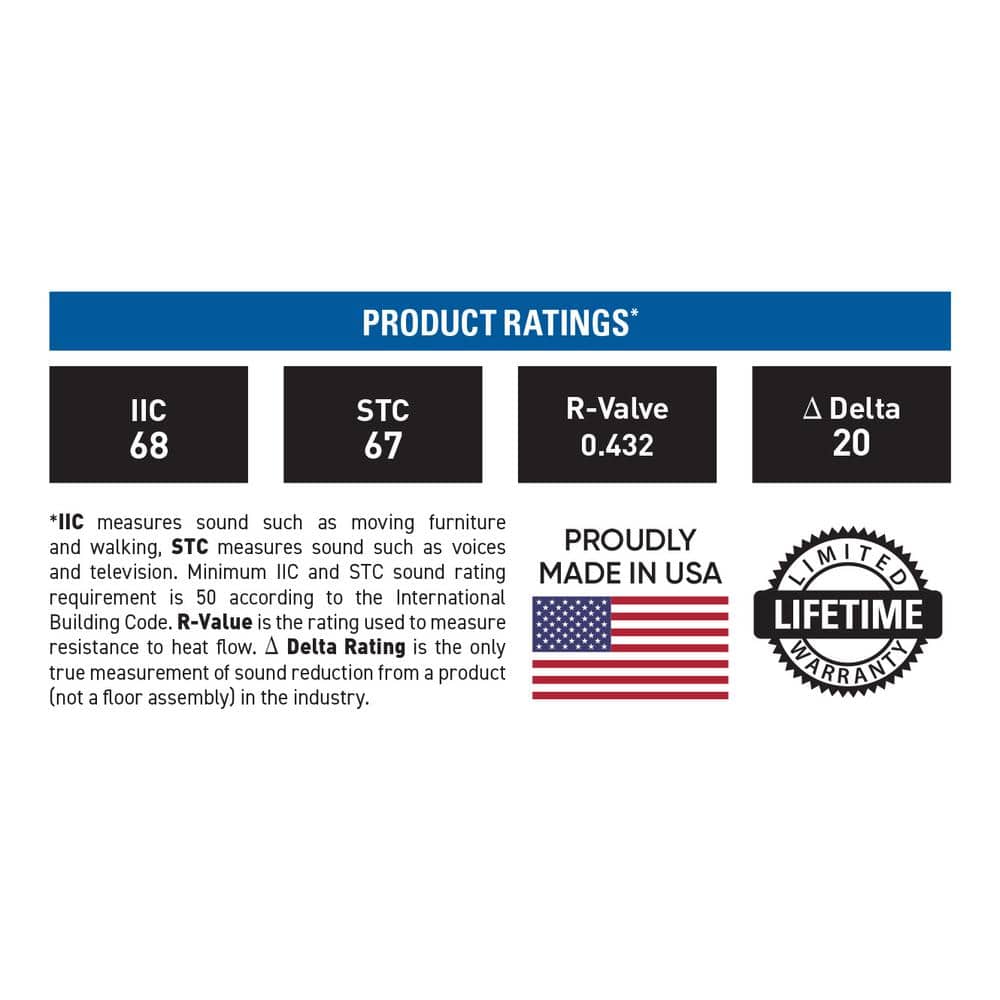 Sound Dampening: Exceeds sound dampening standards with high STC and IIC ratings.