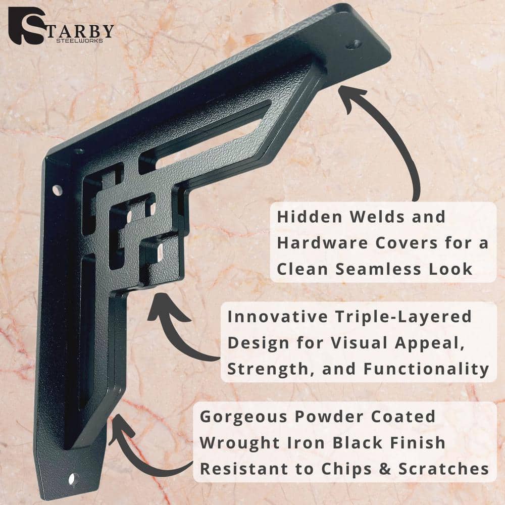 The Rockville Black Iron Shelf Brackets are not just functional supports; they are a testament to the power of elegant design in transforming a space. With their striking hidden welds and stacked steel design, these brackets offer a minimalist yet bold statement for your shelving. Style them under a rustic wooden shelf in a kitchen or amidst granite accents in a living room. These brackets redefine shelving support as an art form, essential for those who desire both strength and beauty in their living environments.
