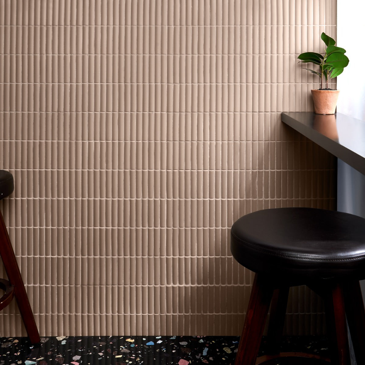 Transform your walls with the Roller Ribbed Taupe Ceramic Tile for a modern and tactile design.