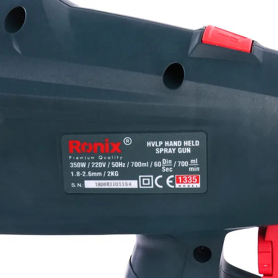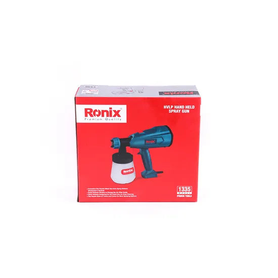 Experience professional-grade painting with the Ronix Model 1335 Handheld HVLP Solenoid Spray Gun. Engineered for precision, this 350W tool ensures even coverage with its high flow rate and adjustable nozzle options, making it ideal for diverse projects from hardware to plastic spraying.