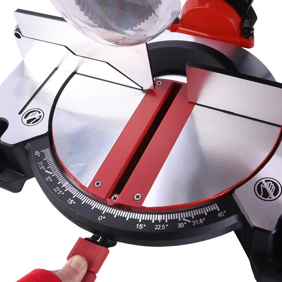 A: The miter saw features an advanced table locking system with 9 stop points, allowing fast and precise angle settings.