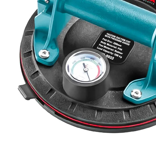 The Ronix Rh-9933 Double Rubber Vacuum Glass Suction Lifter is designed for safely handling large sheets of glass and other smooth materials. With its double rubber pads and a robust press gauge, this lifter provides up to 200kg of secure load capacity, ensuring efficiency and safety on your worksite.
