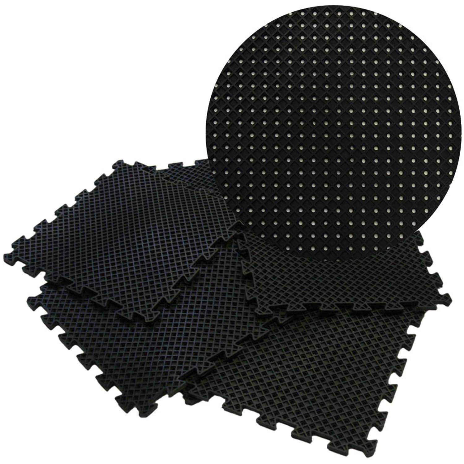 Q: Are these tiles slip-resistant even when wet? A: Yes, the rubber material and corrugated design provide excellent traction and safety in damp environments.
