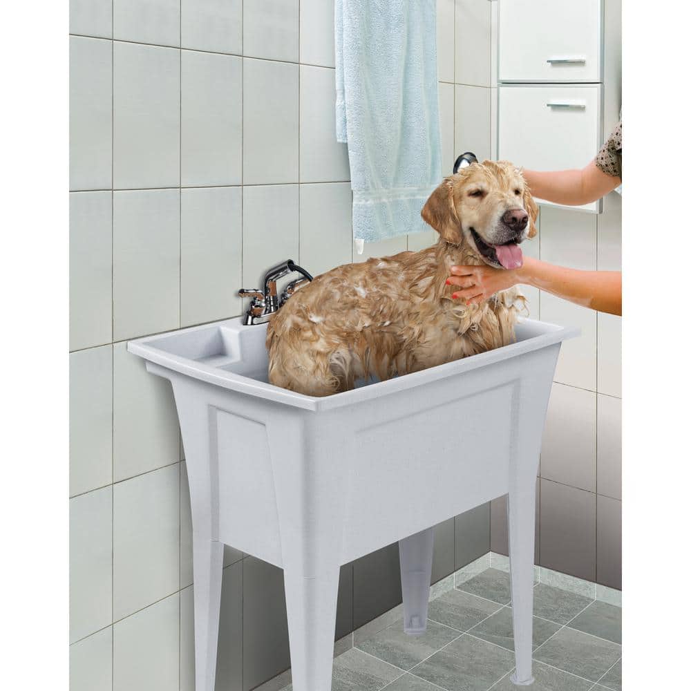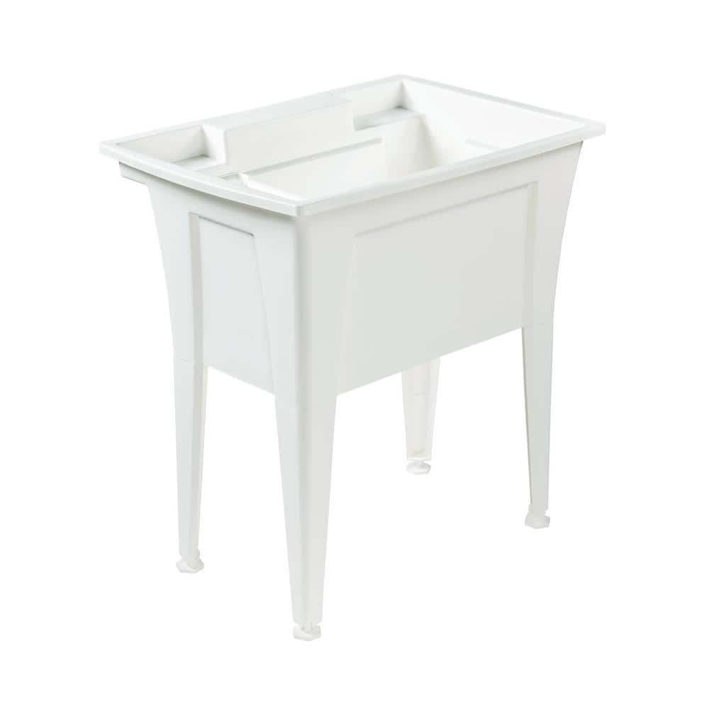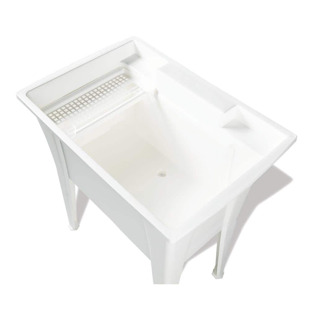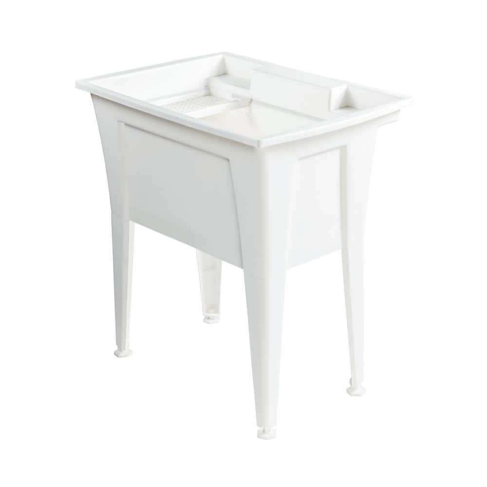 Q: Can this utility sink handle heavy-duty tasks? A: Yes, the sink is made from durable virgin polypropylene, capable of handling tough laundry or utility tasks.