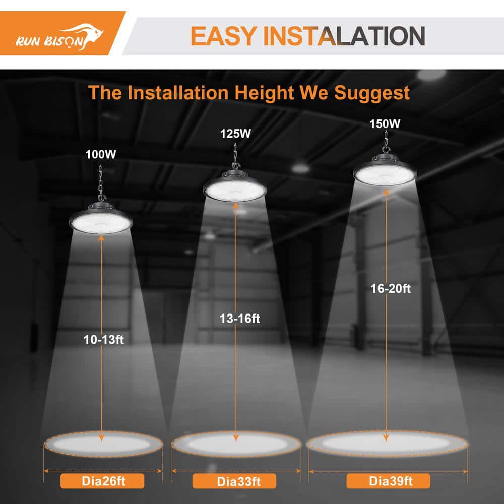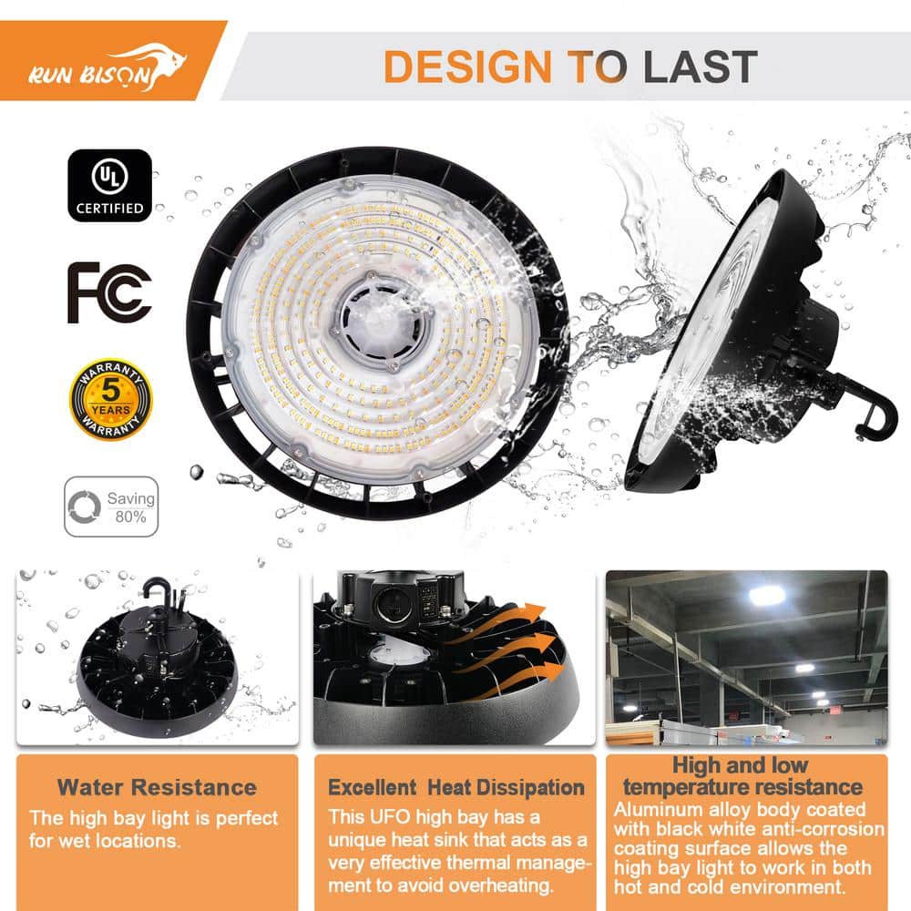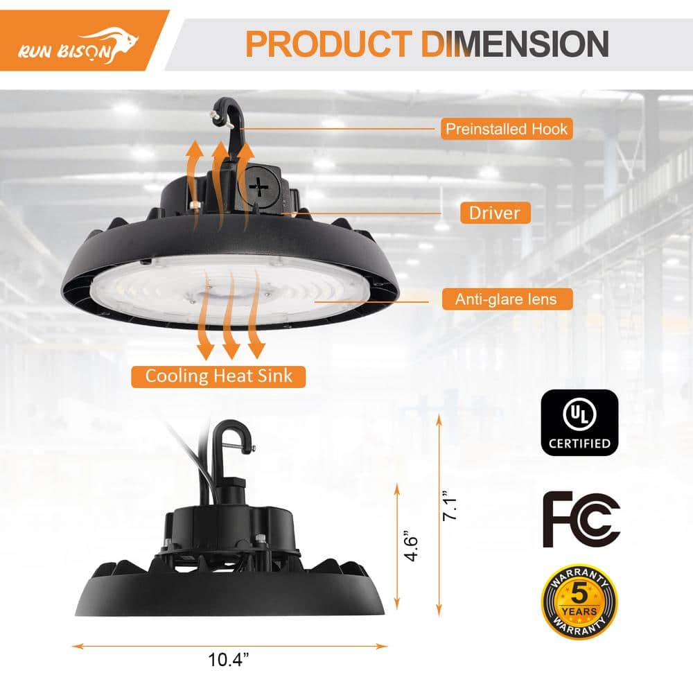 Transform your commercial space with the efficiency and brilliance of RUN BISON UFO LED High Bay Lights—purchase your set today and experience superior illumination!