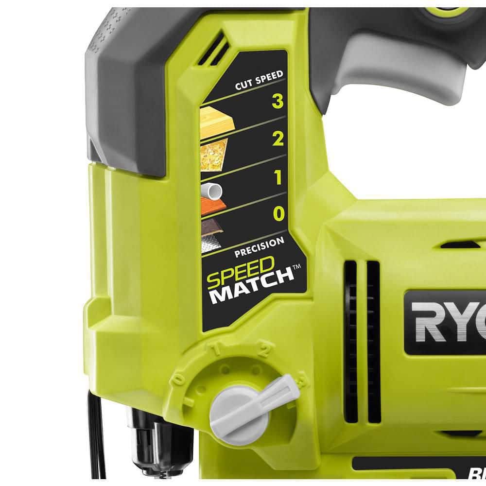 A versatile cordless jig saw delivering corded-like performance with SPEEDMATCH orbital control and a variable-speed dial. Compatible with the RYOBI ONE+ 18V system, it features BladeSaver for longer blade life and tool-free blade changes for fast, precise cuts across materials.