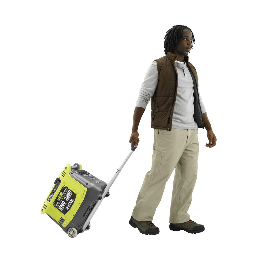 Compact, quiet, and clean power for jobsites, camping, and emergencies. This gasoline-powered digital inverter generator delivers 1800 running watts and 2200 starting watts with parallel capability and built-in wheels with telescoping handle for easy transport.